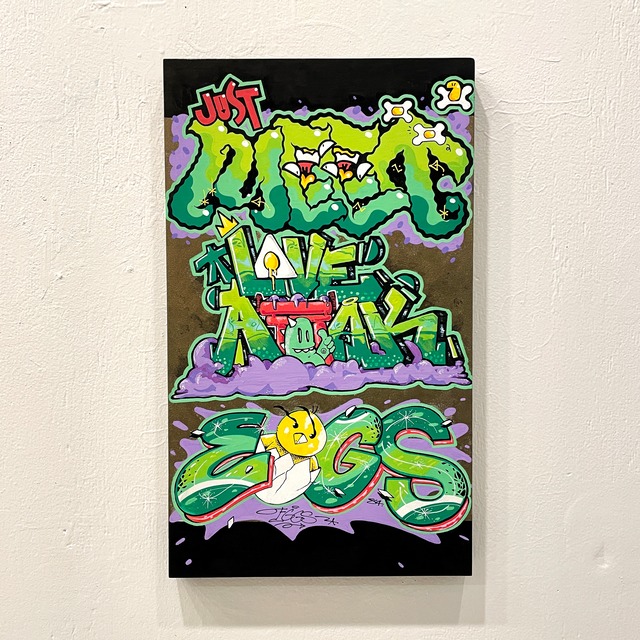 CMKgalleryにて開催中の LOVEATTACK solo exhibition 「ラブアタックはここにいた。」 出展作品。 アーティスト名:ラブアタック サイズ(縦 ・ 横 ・ 厚み / mm):410 × 240 × 20 素材 : ウッドパネル ※発送は展示終了(12/1) 以降です。ご了承ください。 ※お使いのデバイス環境により、実際の商品の色と違いが生じることもございます。