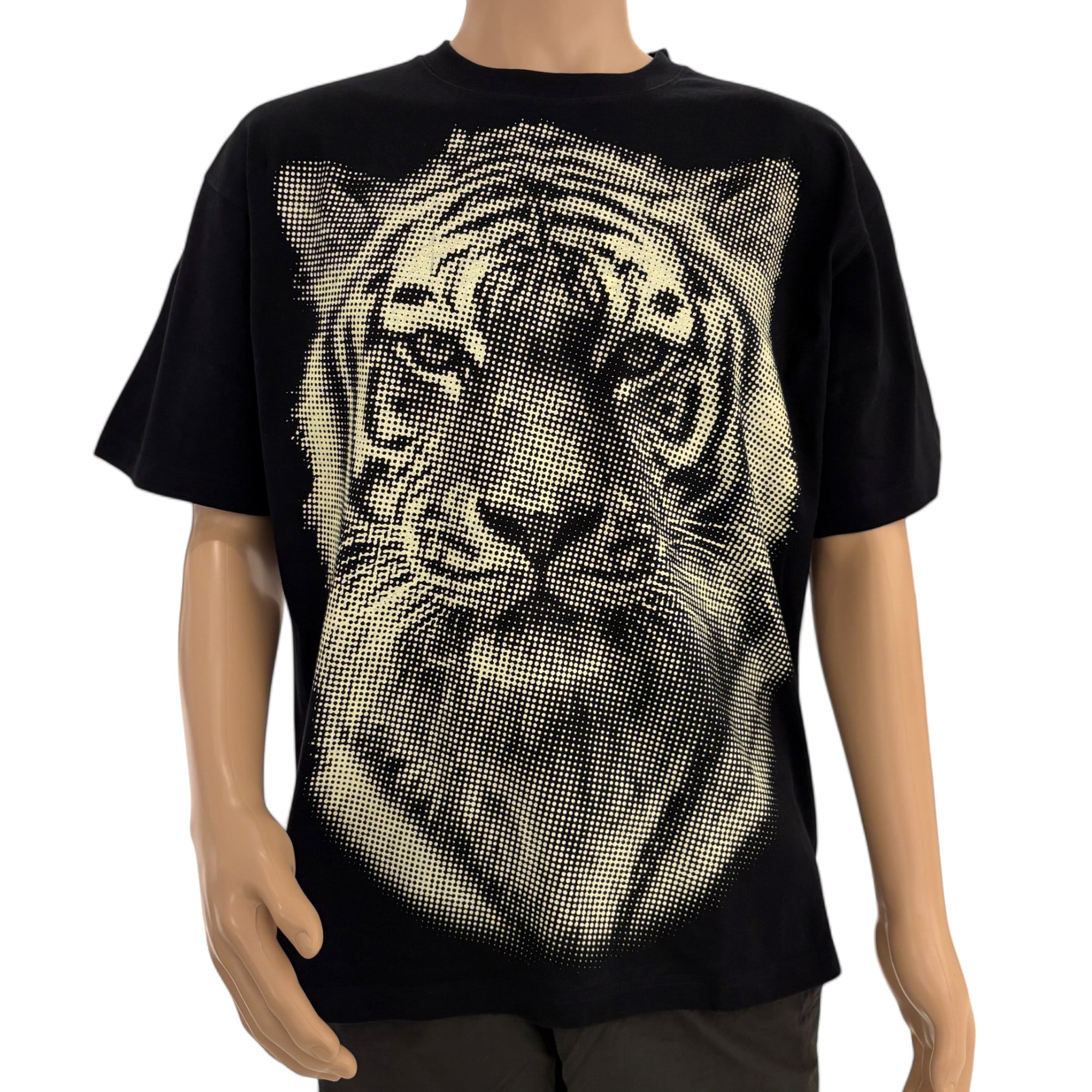 Tシャツのフロントに迫力抜群の虎をハーフトーンでクールに落とし込み、