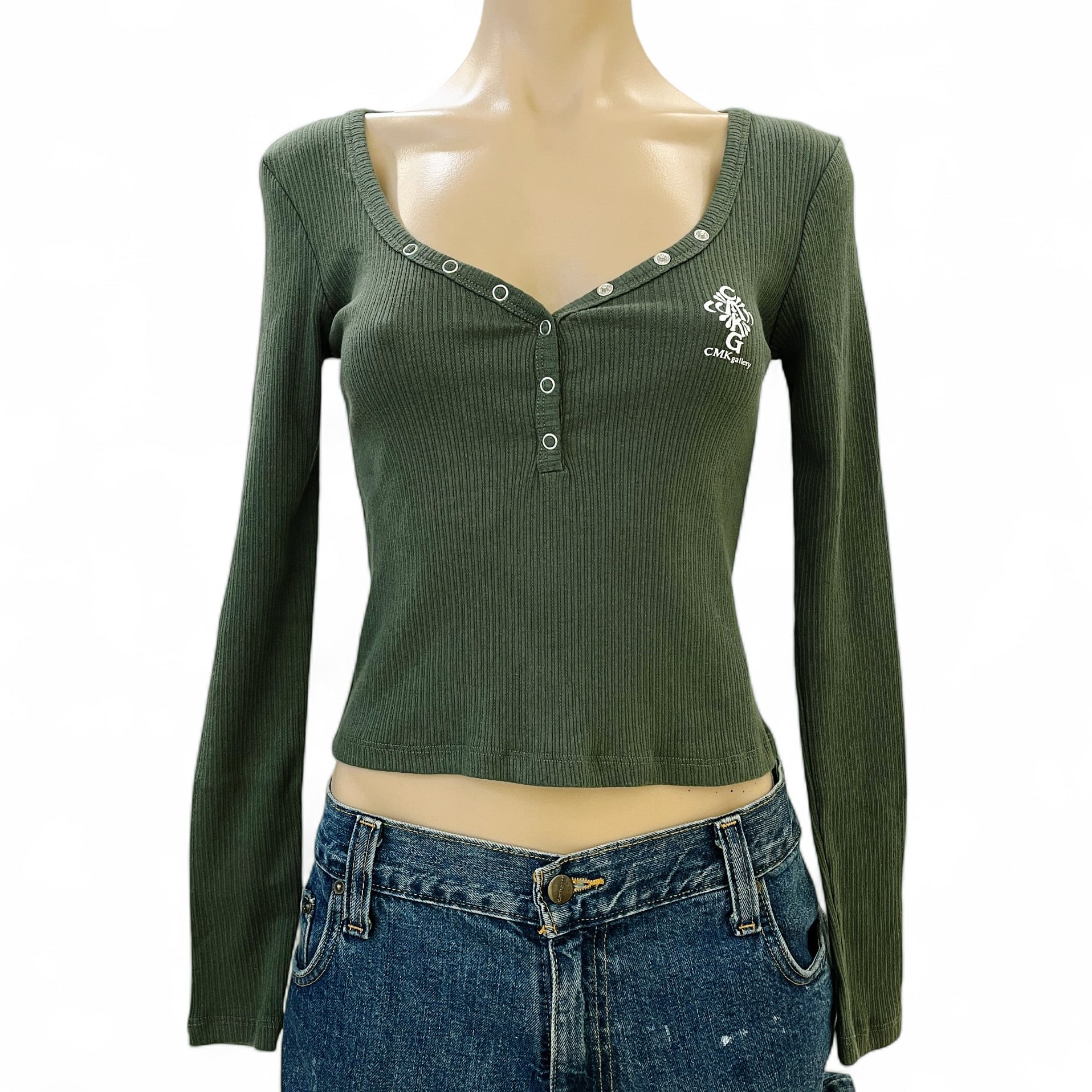 デコルテが綺麗に見えるトップスの胸元にCMKGクロスロゴを落とし込んだシンプルな1着。程よい抜け感で普段使いにピッタリのコットン素材のアイテムです。シンプル〜カジュアルまで様々なボトムスと合わせて着用いただけます。