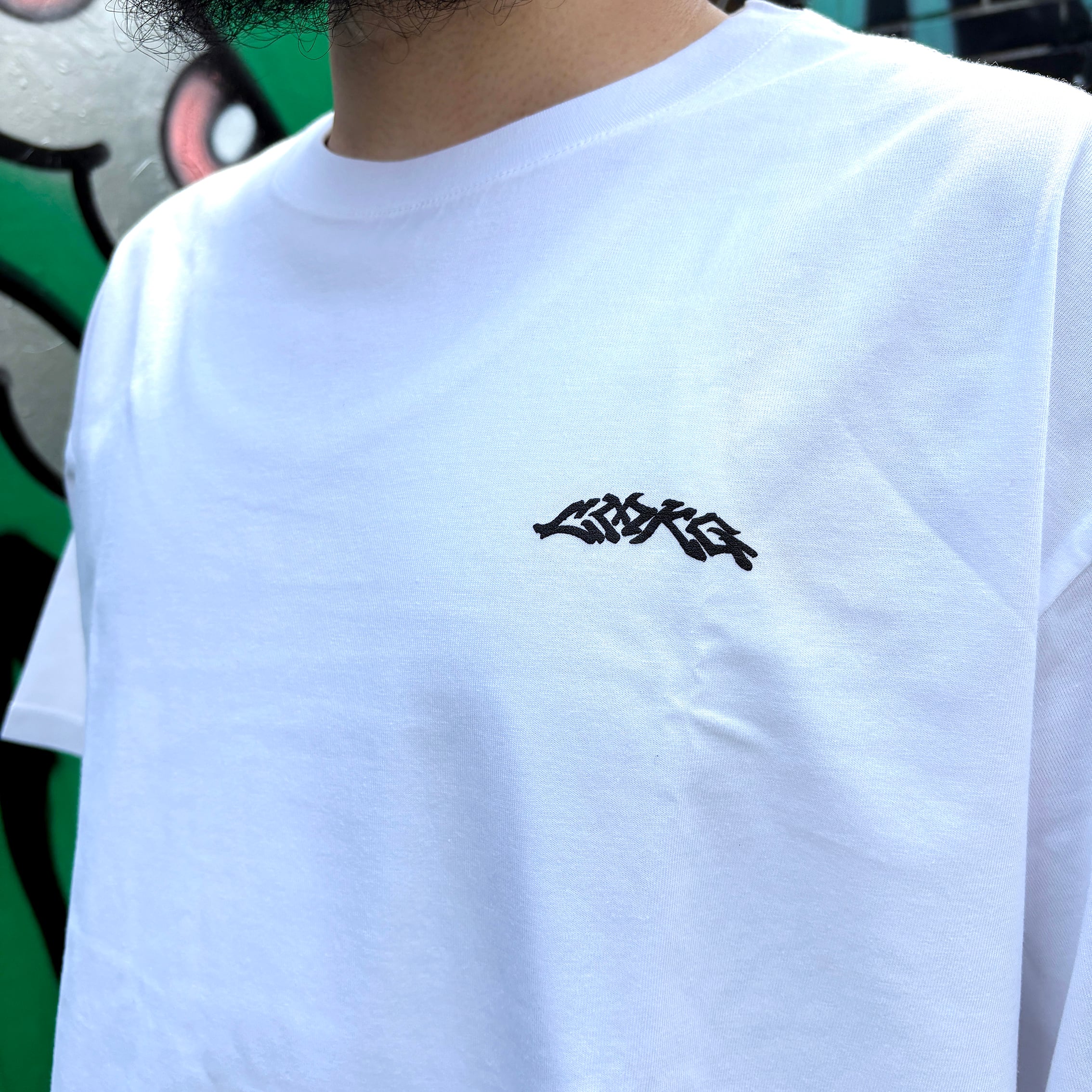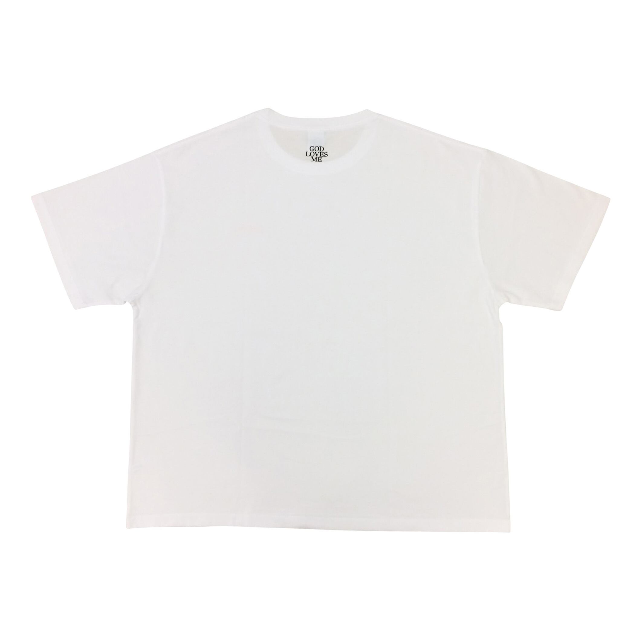 左胸に発泡仕様のロゴプリントと背面首元に"GOD LOVES ME"とプリントされています。