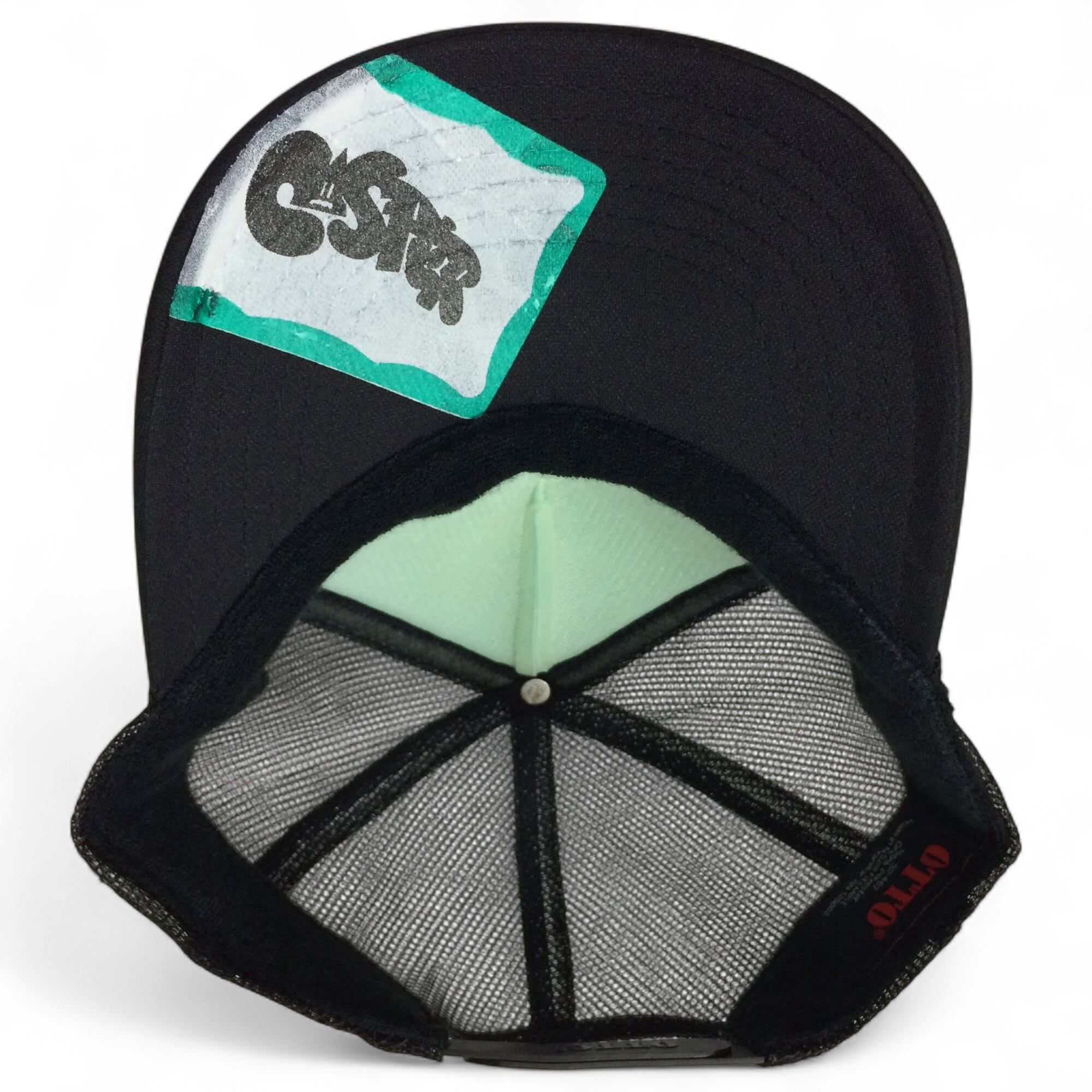 ハイクラウンのメッシュキャップに彩色し、ガンメタリックの特殊インクでFIRE CASPCHANをプリント。ツバの内側にも拘りのプリントを施した目を惹きつけるオンリーワンアイテム。※店頭にて実物をご覧いただけますので、お気軽にスタッフまでお声かけください。