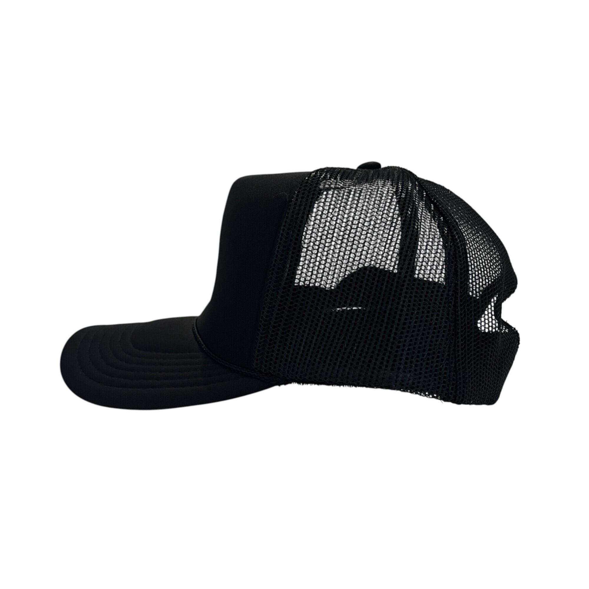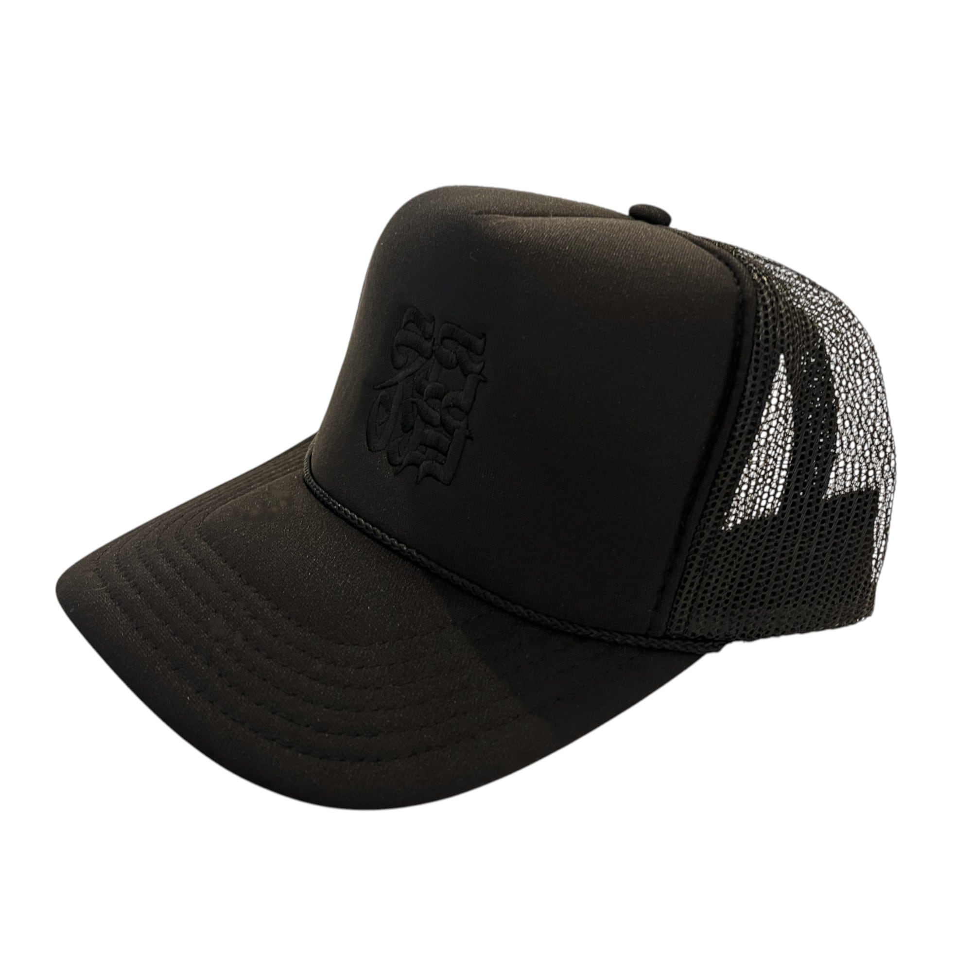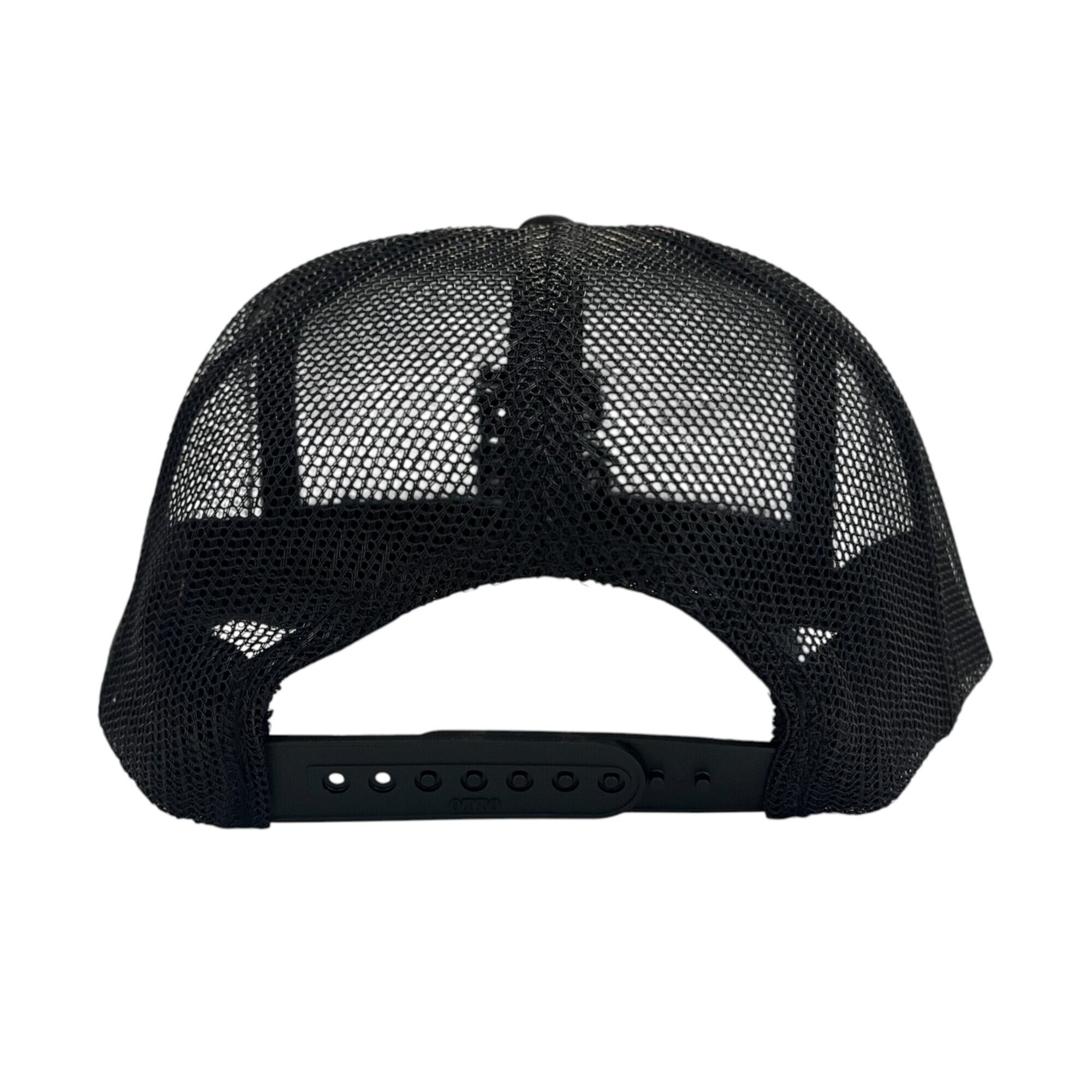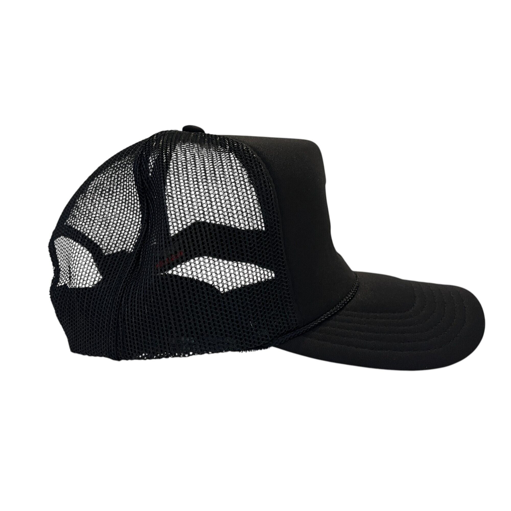 CASPER Letter"福”を黒糸で刺繍したハイクラウンタイプのメッシュキャップ。
