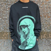 フロントに聖母マリアの祈り姿をハーフトーンタッチで落とし込み、