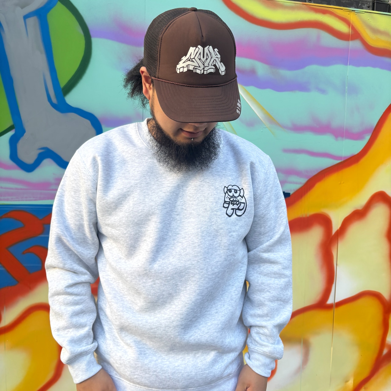 10オンス クルーネックスウェット裏起毛。CASPERのオリジナルキャラクター "CASPCHAN"をフロントにワンポイント、バック首元にはCMK GALLERYをプリントしたシンプルなTシャツ。