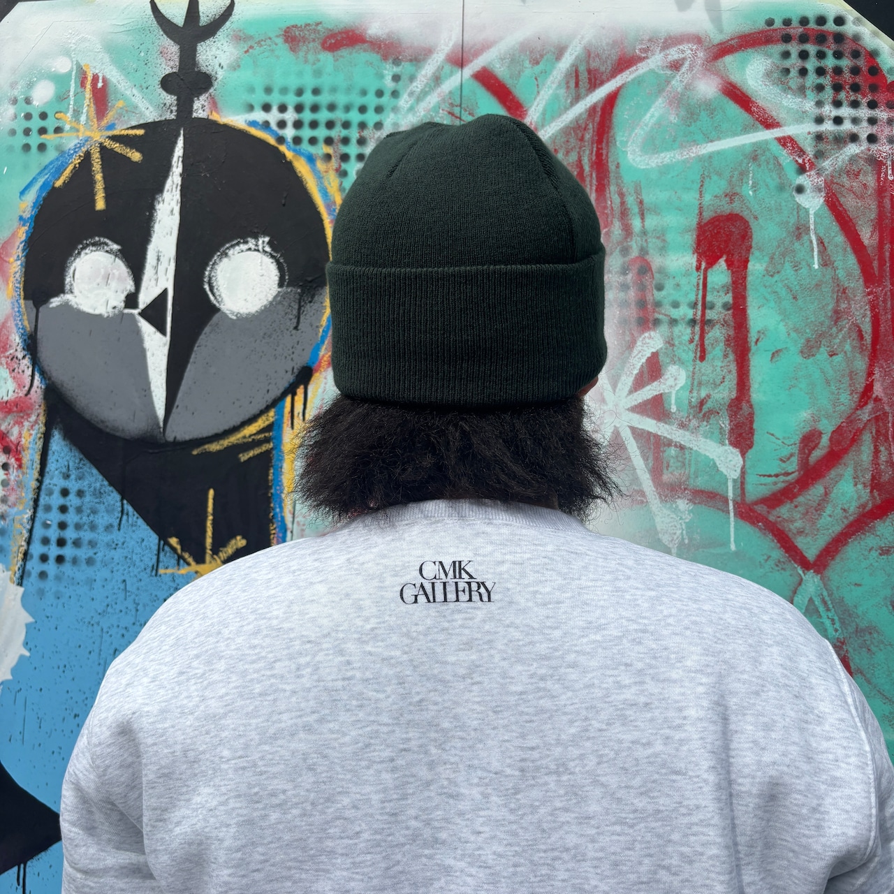 10オンス クルーネックスウェット裏起毛。JOEの絵画作品「琳派新解釈 風神雷神」"雷神"を前面にプリントしたロングスリーブTシャツ。襟元には"CMKGALLERY"とプリントされています。
