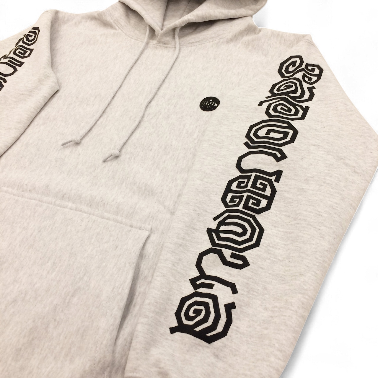 左胸にはCMKgalleryのエンブレムを発泡インク仕様でプリントしたプルオーバーパーカー。