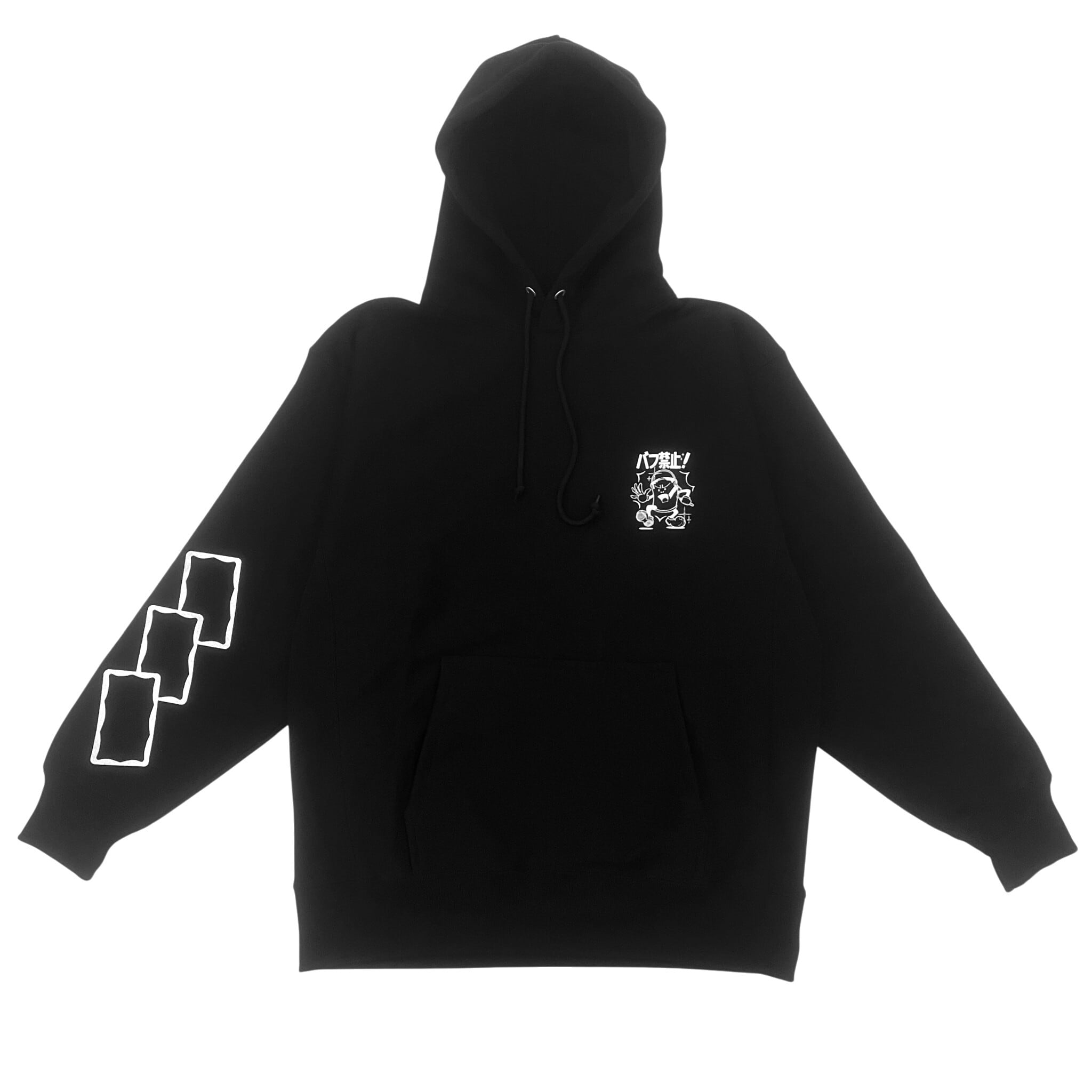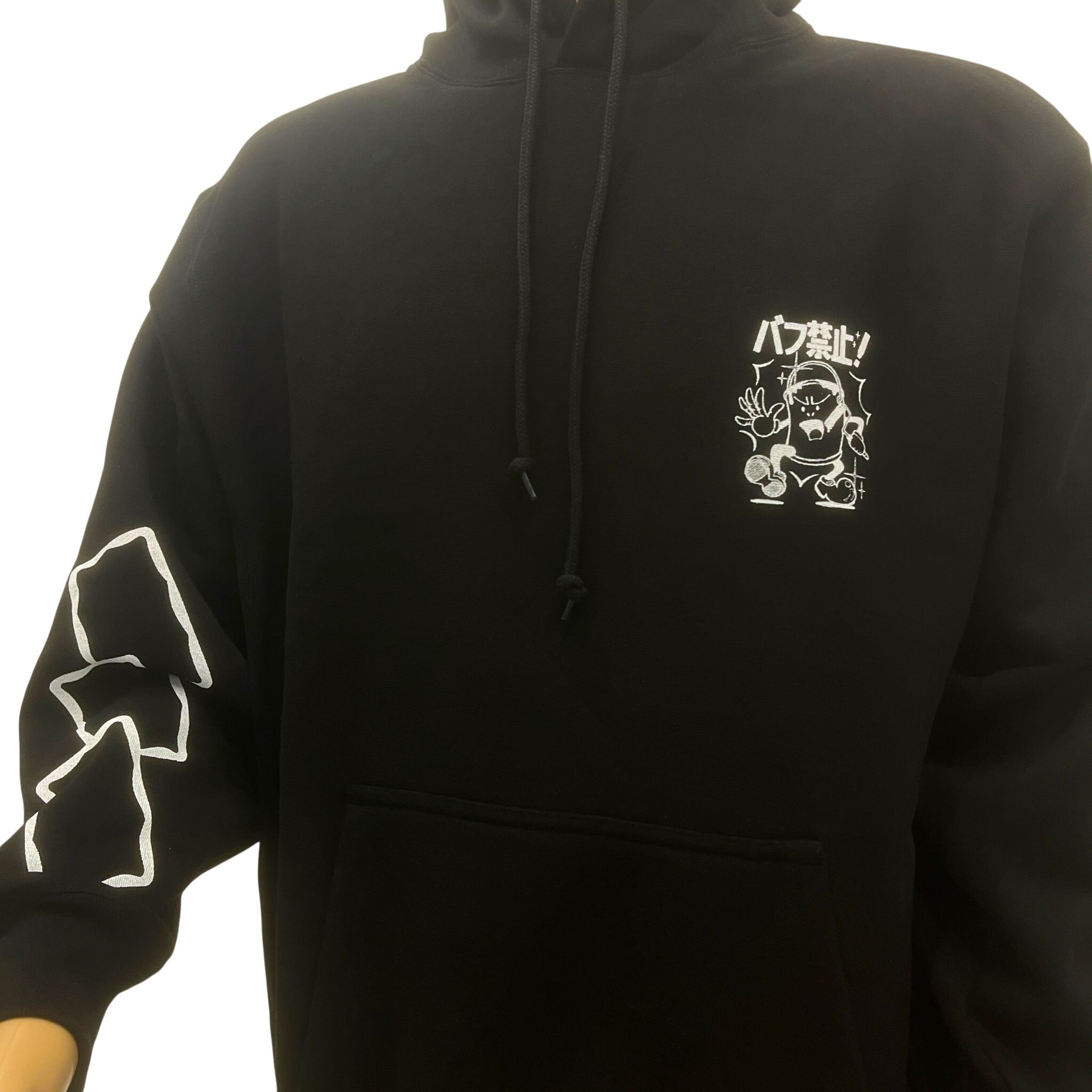 CMKGとのコラボデザインをプリントしたプルオーバーパーカー
