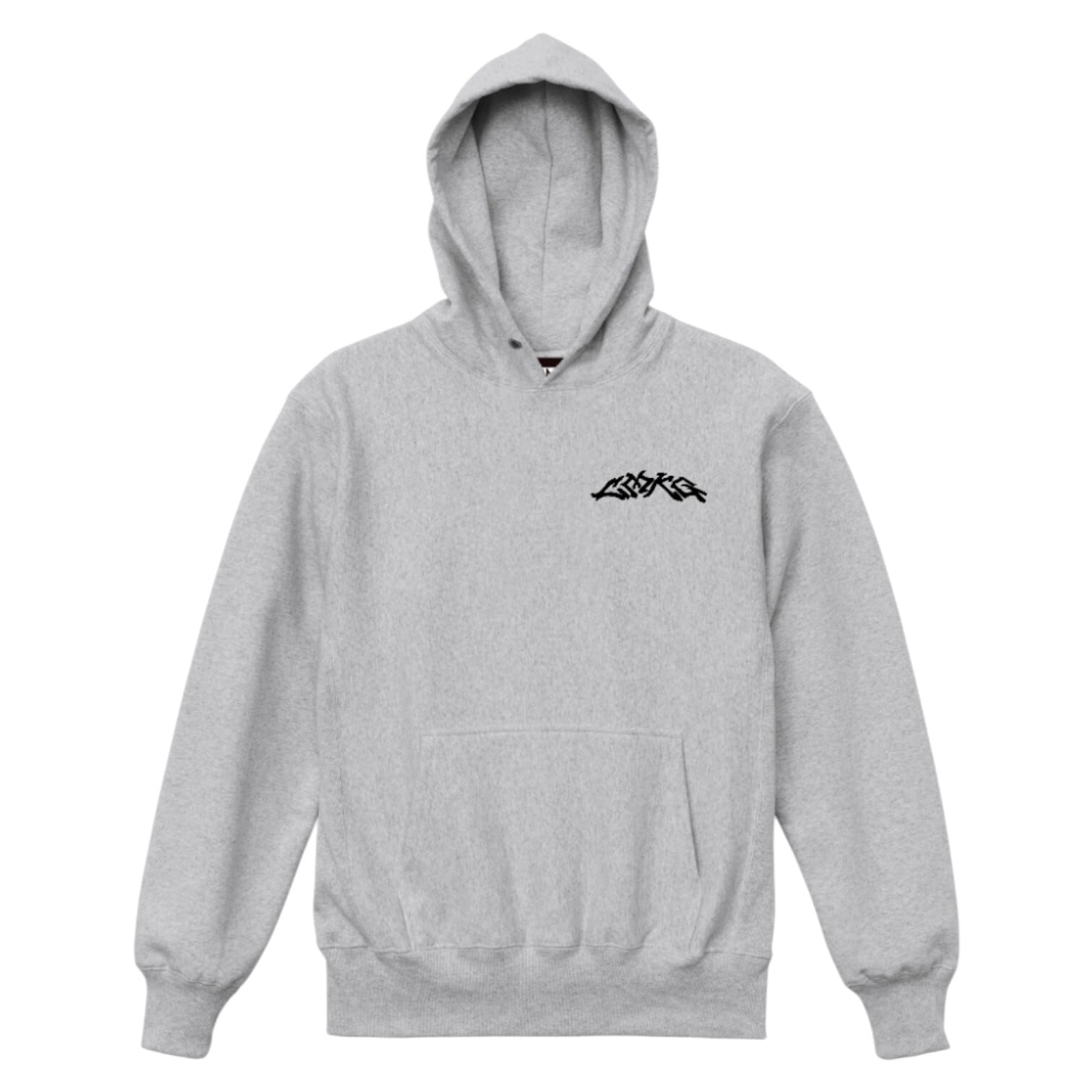 バックにJOEデザインの "CMKG"をプリントしたヘビーウェイトフーディ裏起毛。