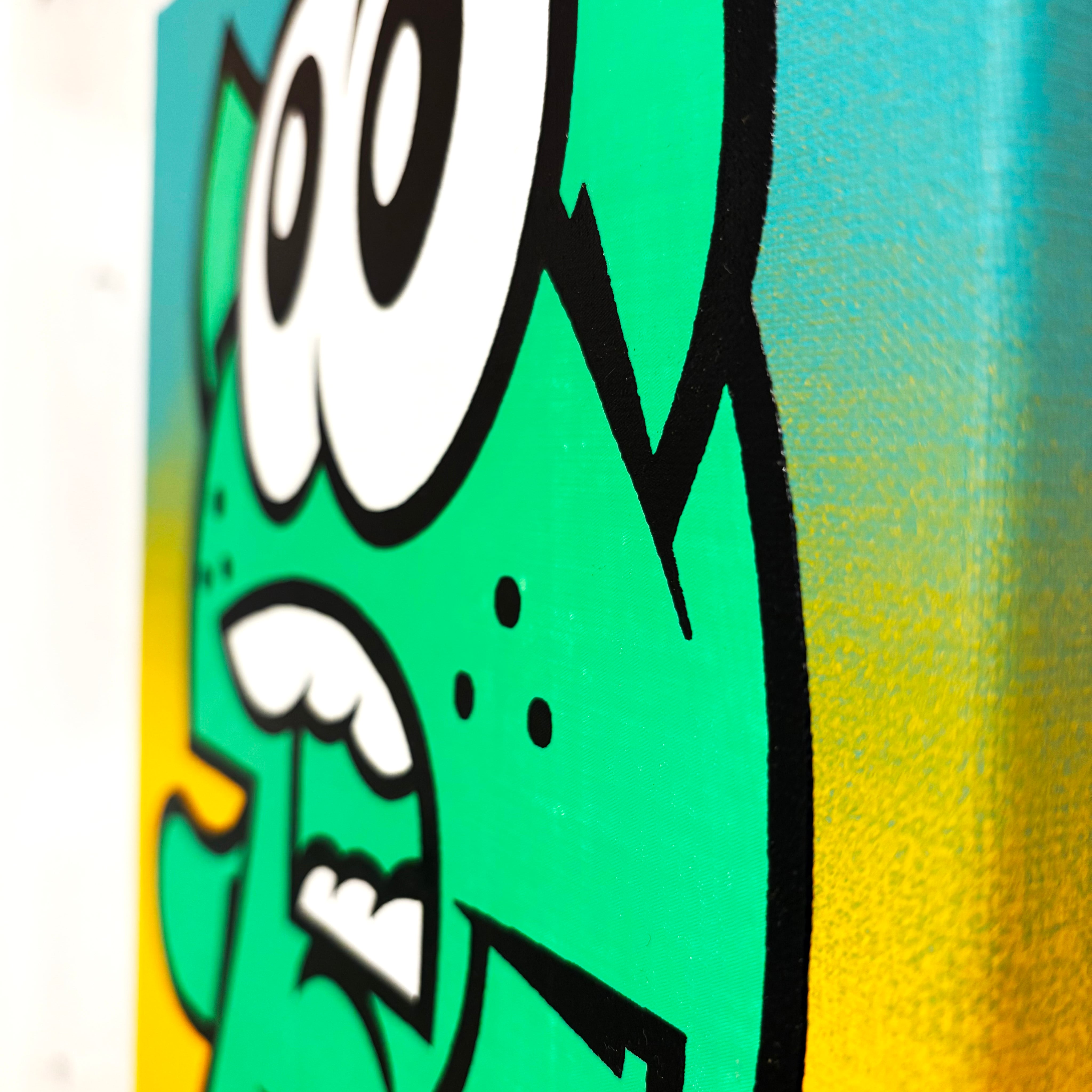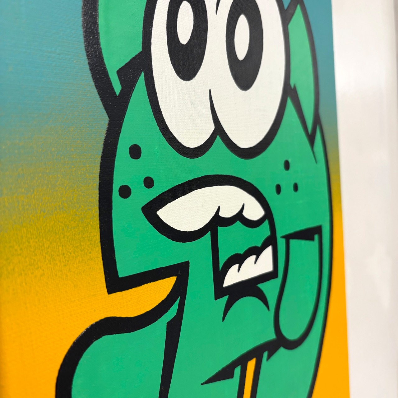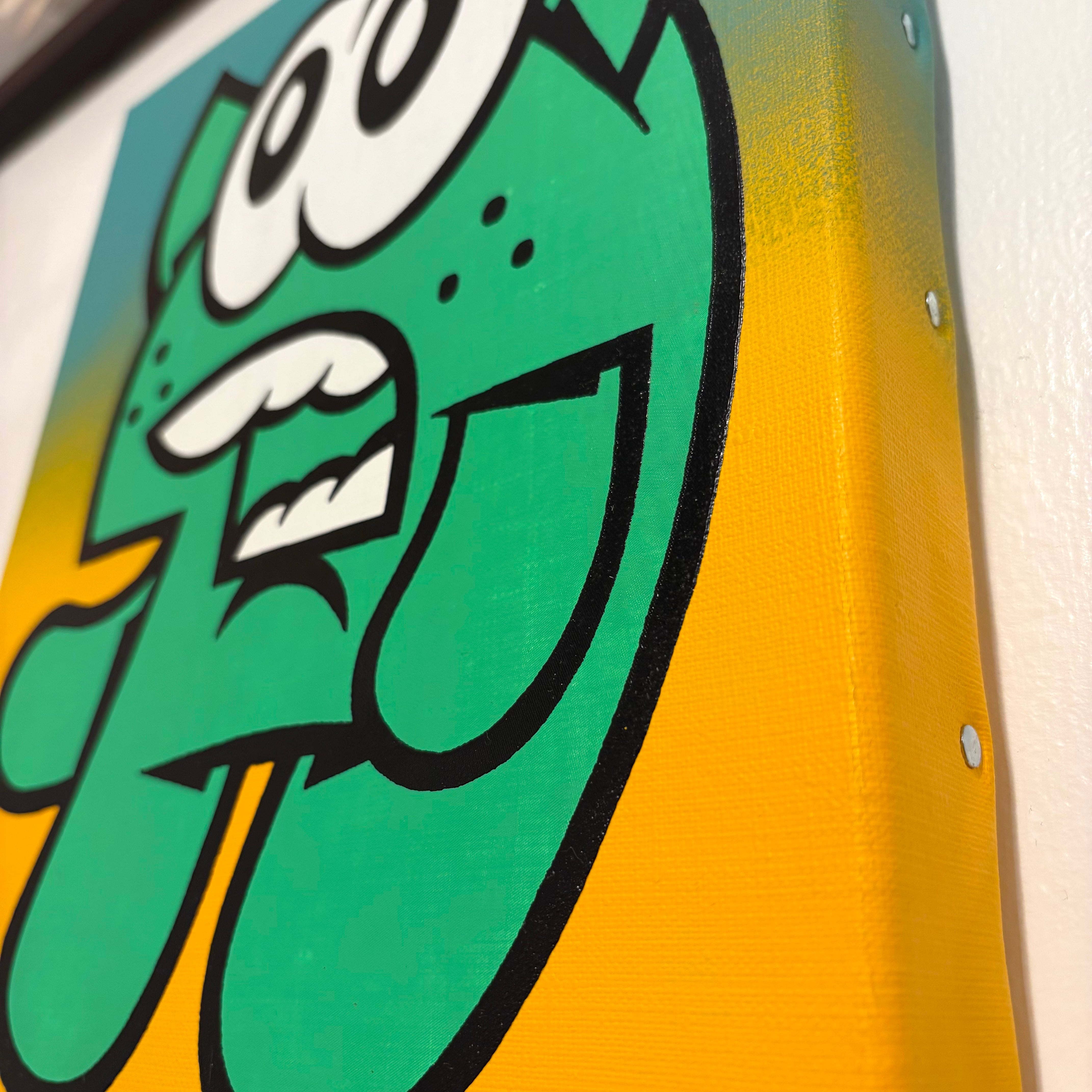 厚みのある特製キャンバスにCASPERの人気キャラクターCASPCHANをシルクスクリーンプリントで制作したレプリカ作品。2025年制作。