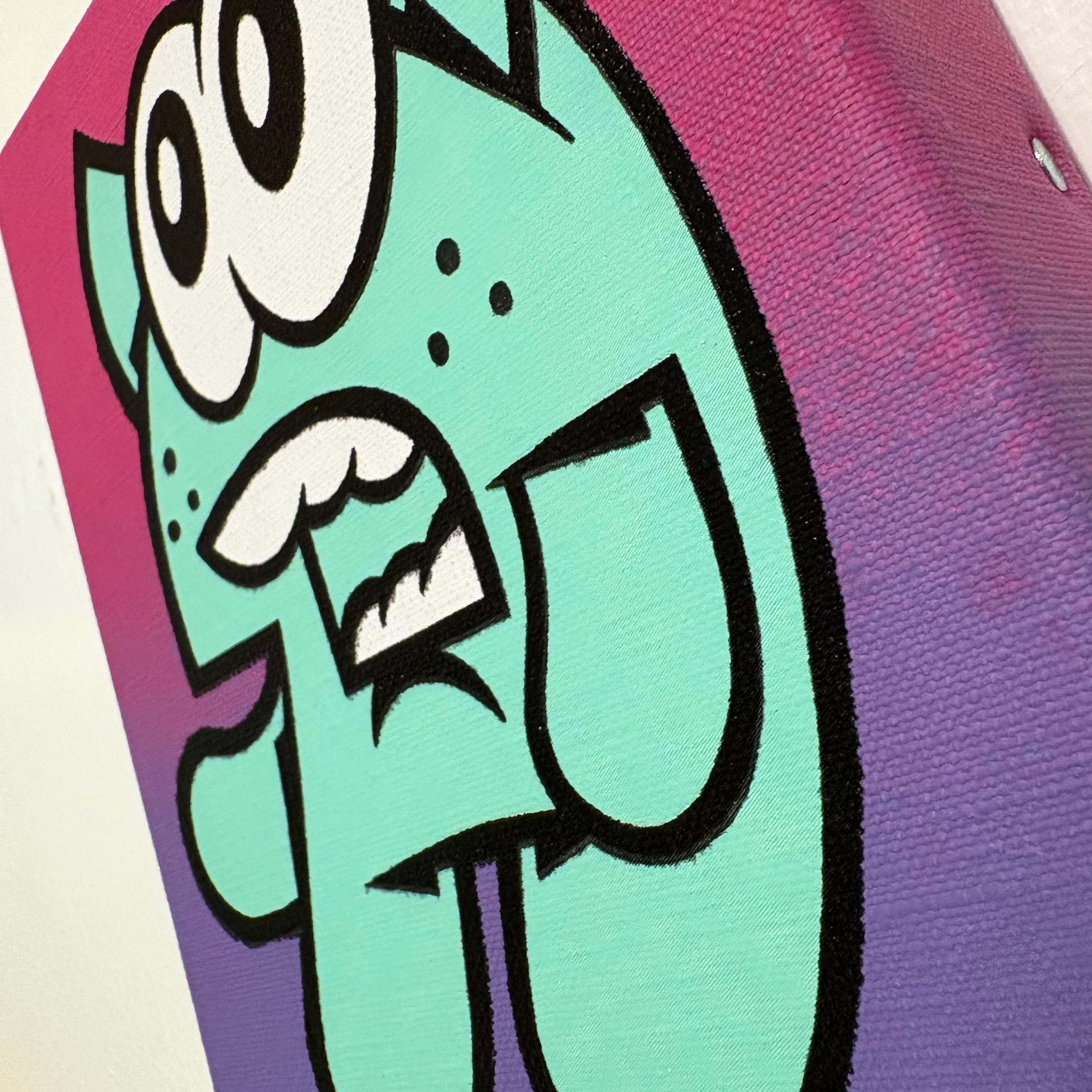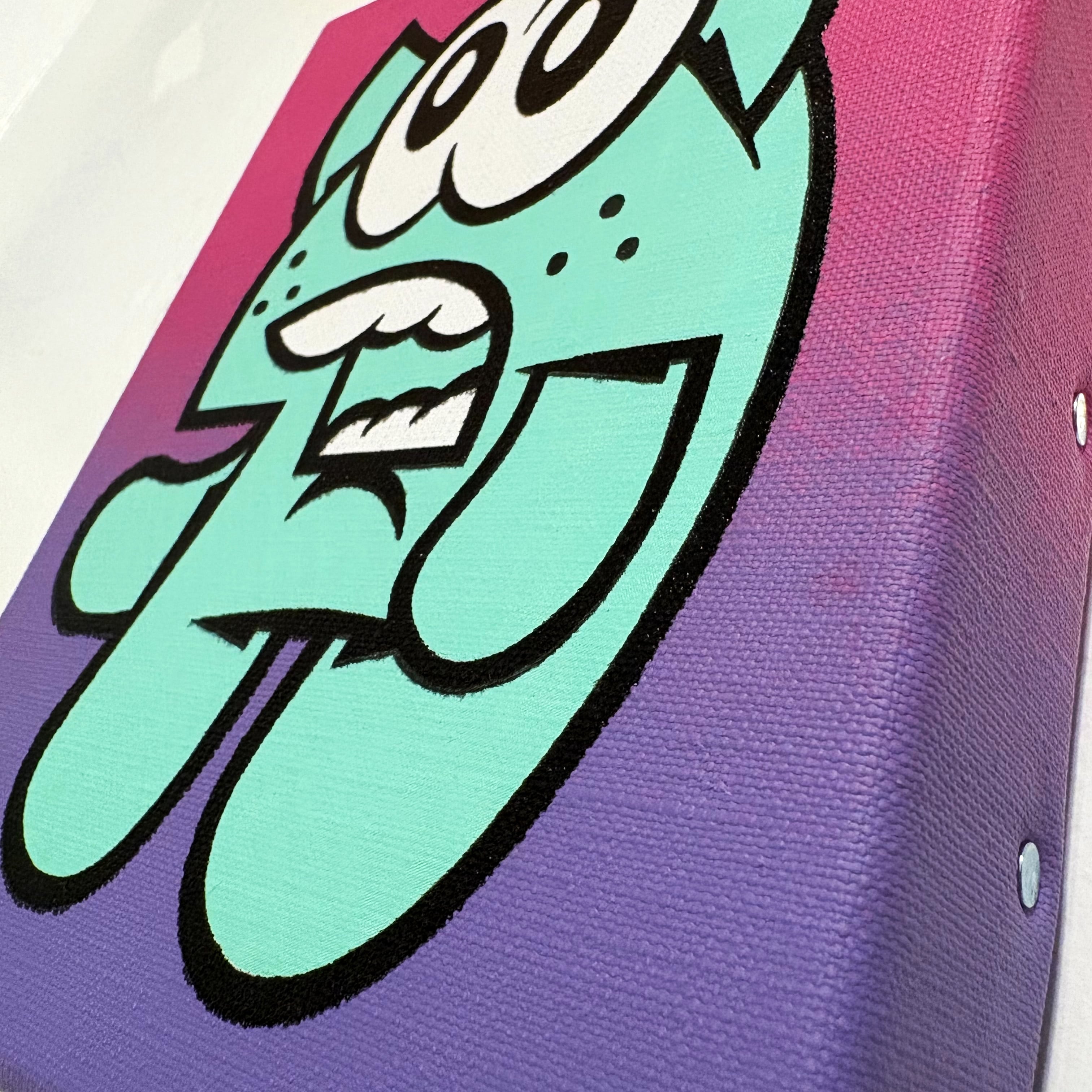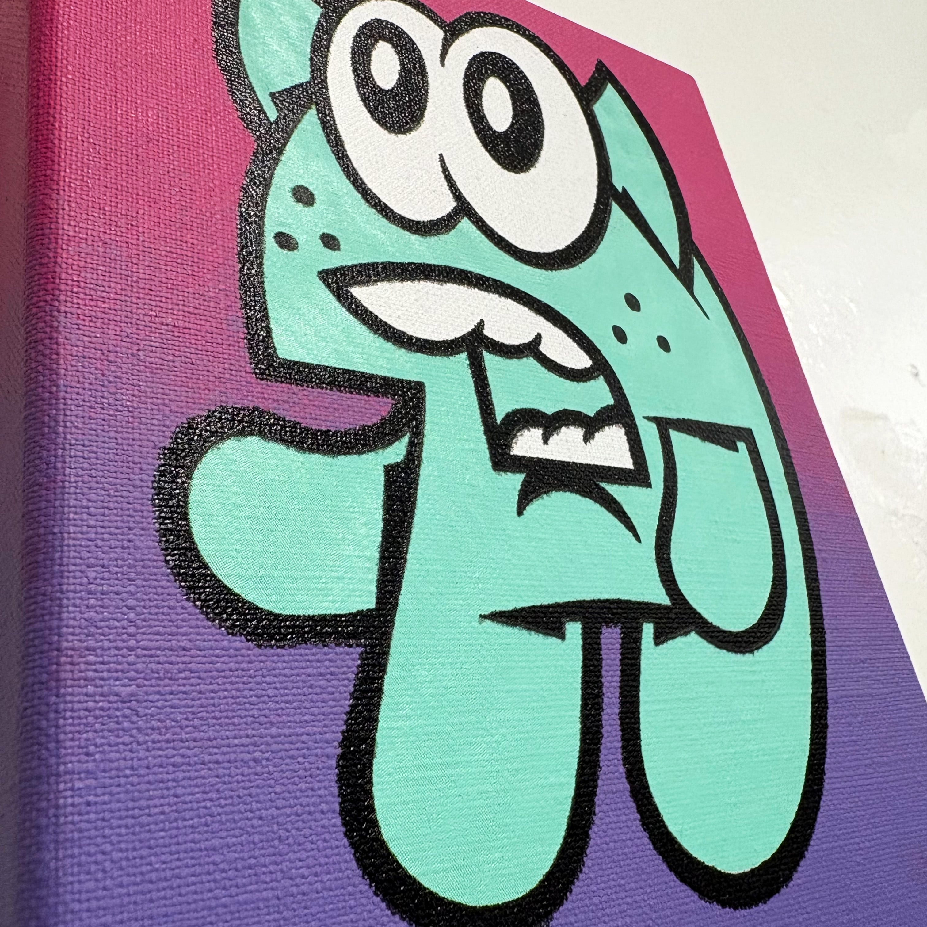 厚みのある特製キャンバスにCASPERの人気キャラクターCASPCHANをシルクスクリーンプリントで制作したレプリカ作品。2025年制作。