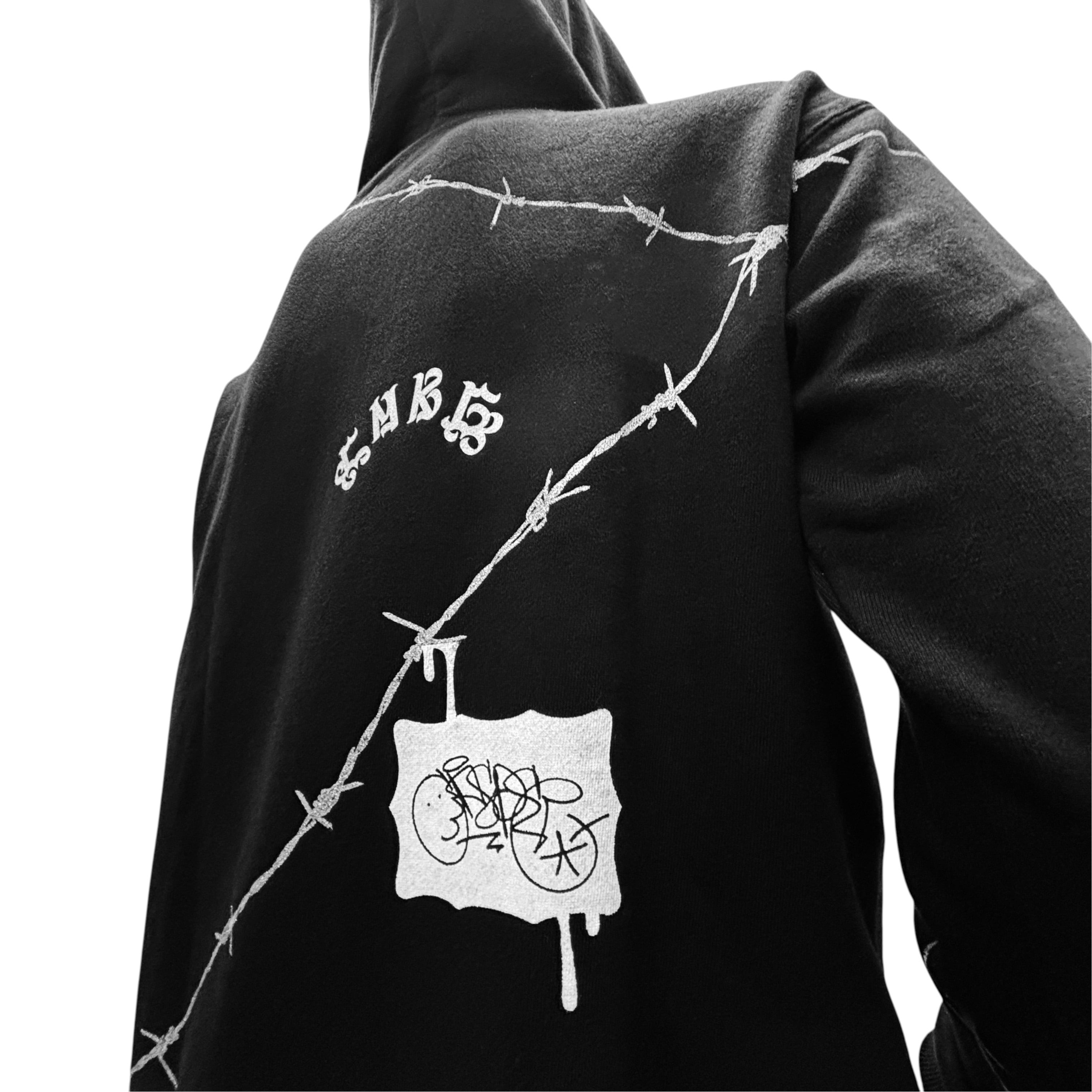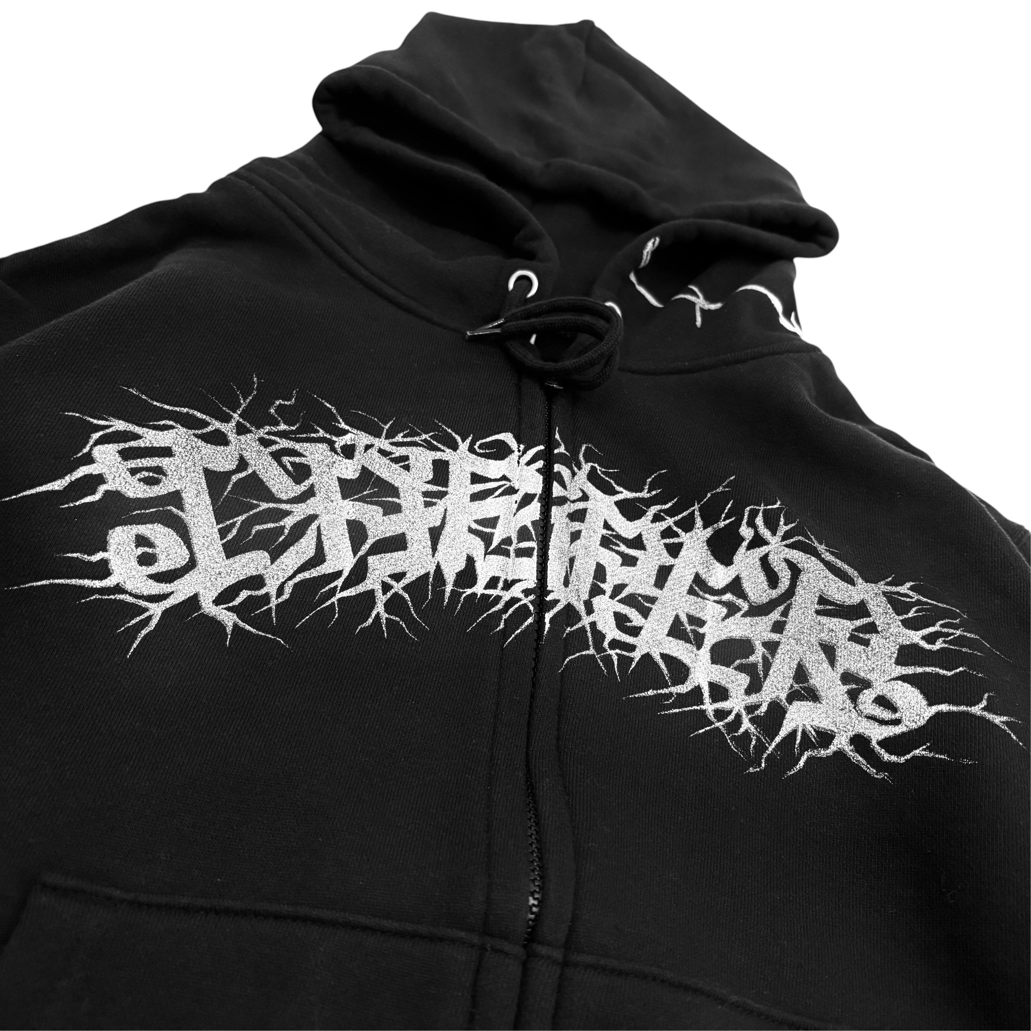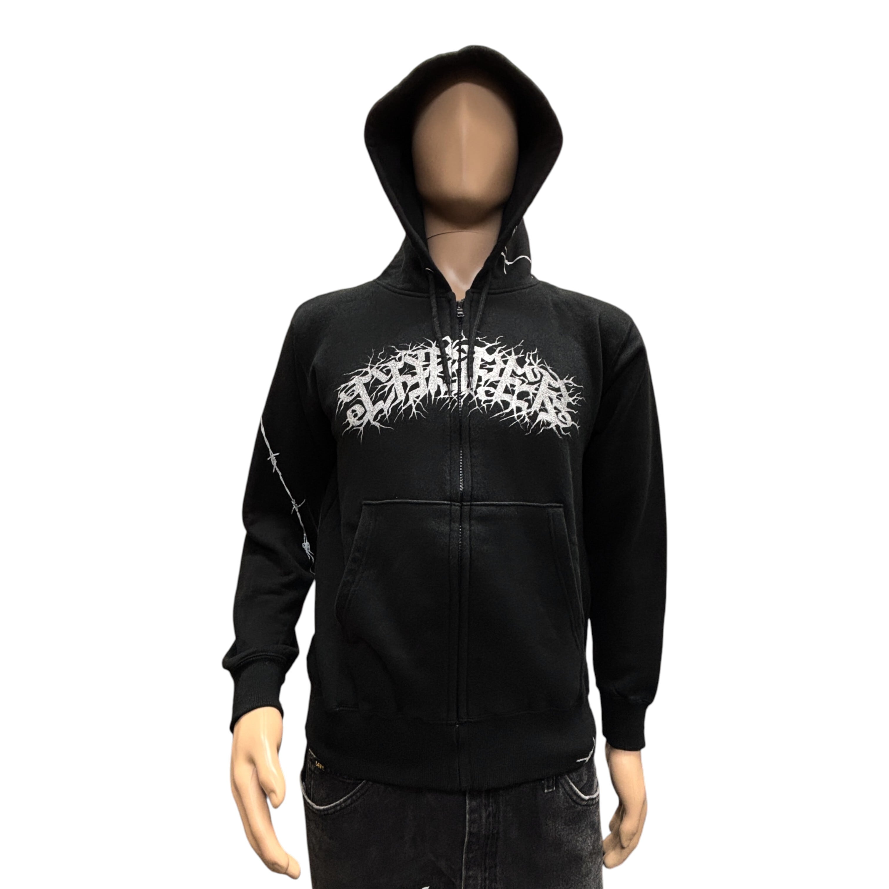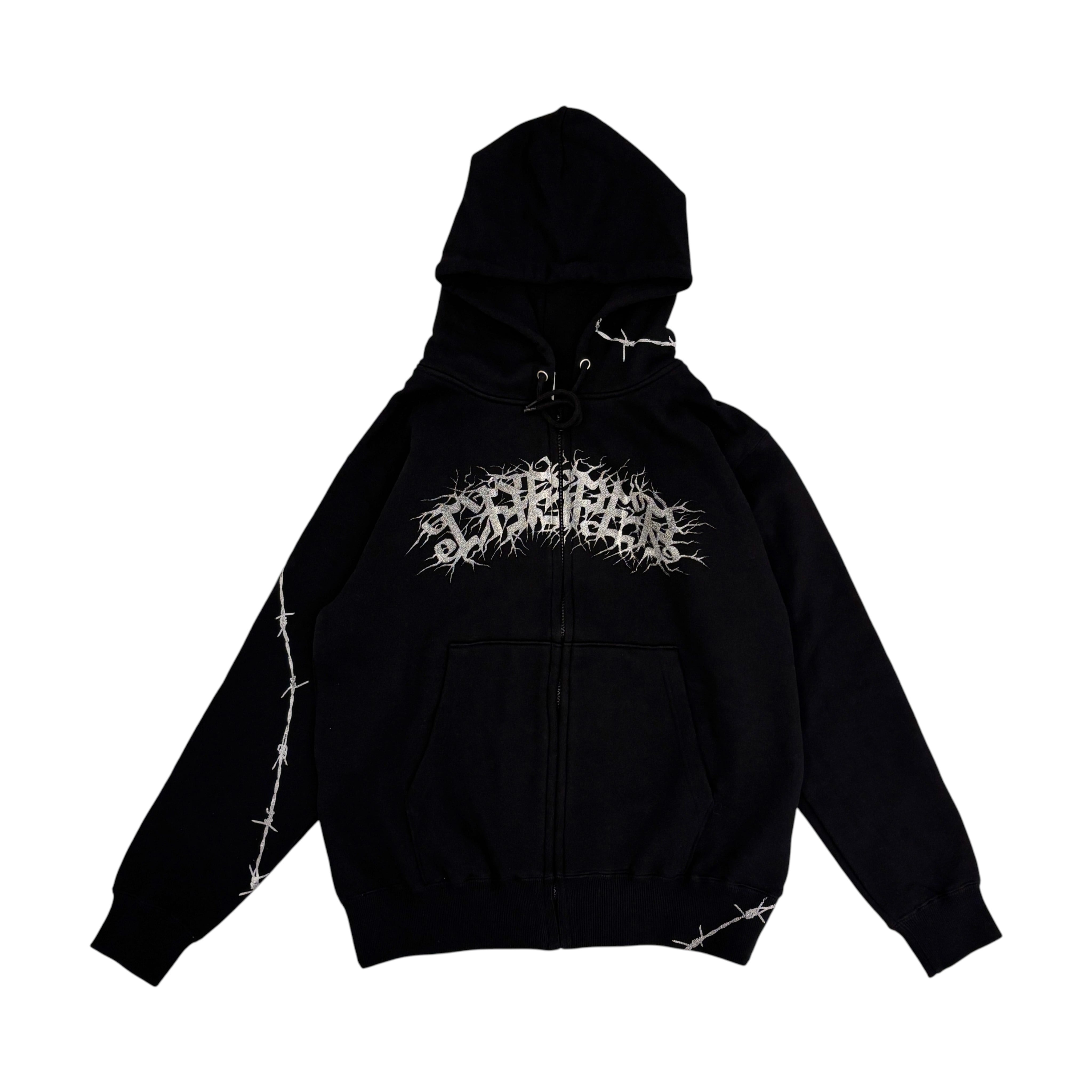 オールシーズン活躍できる裏パイル8,8オンスジップアップフーディー全体に有刺鉄線をフロントにはCASPERレターをシルバーインクでプリントした1着。