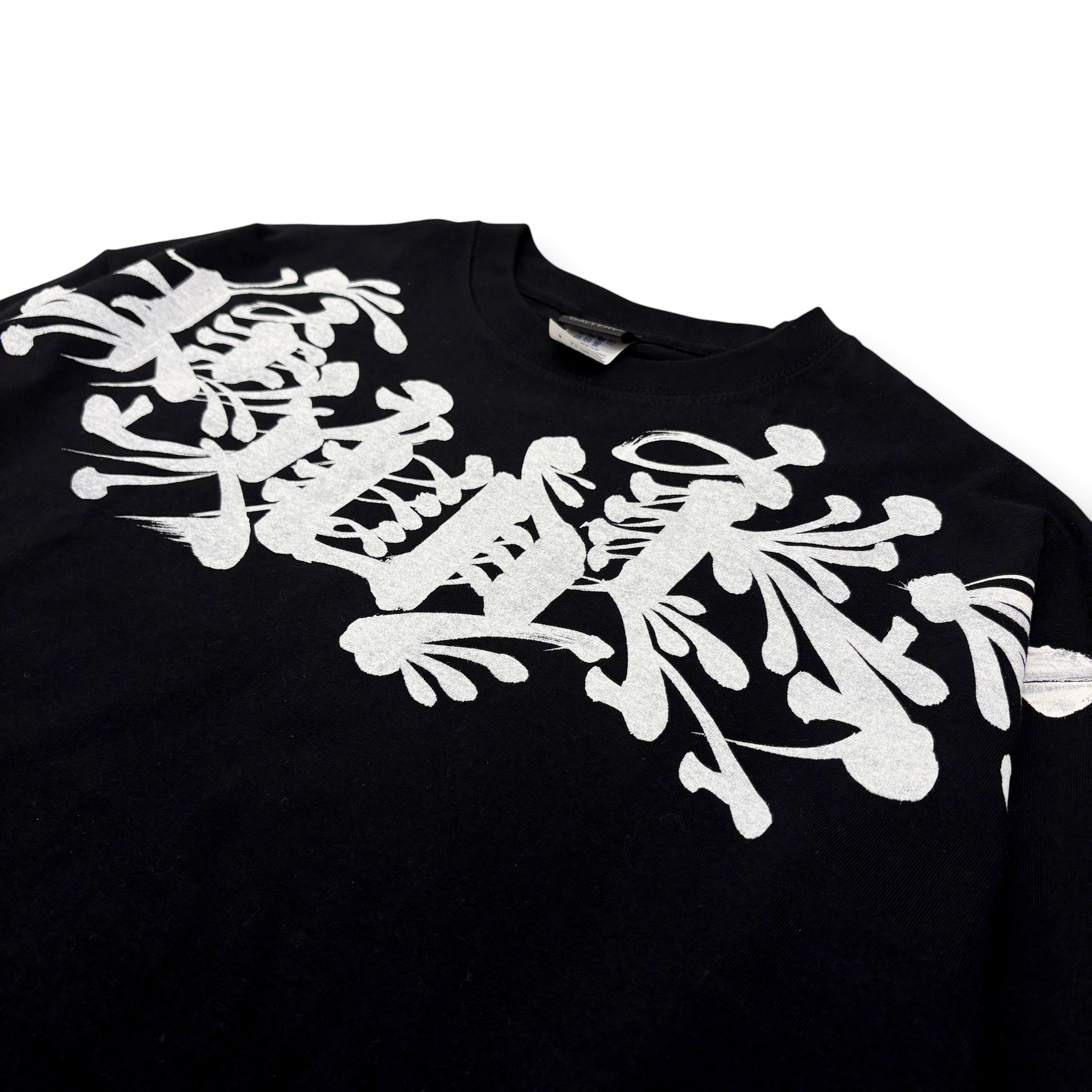 JOECMKによる筆レター"CMK"を胸元に大きくプリントしたロンT。