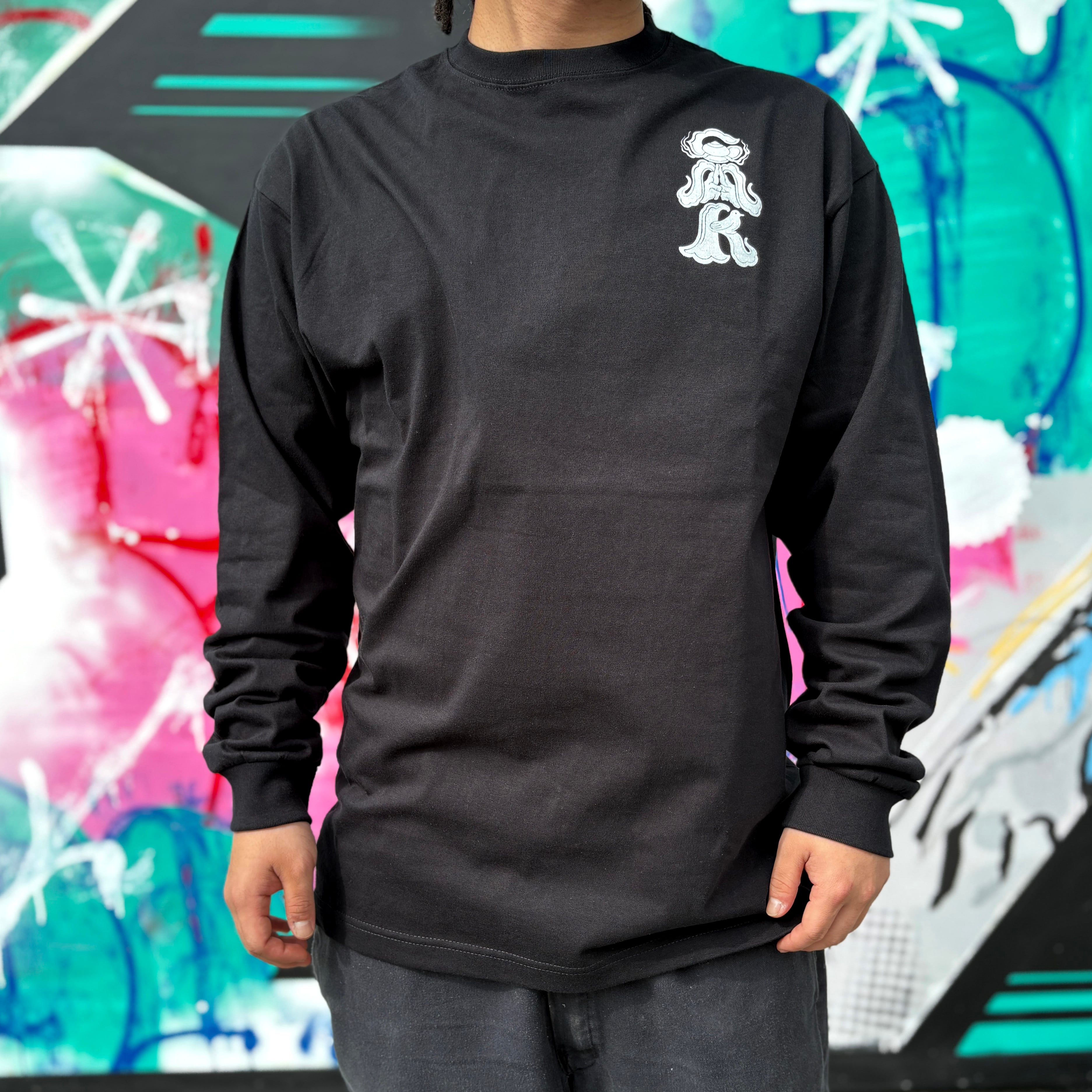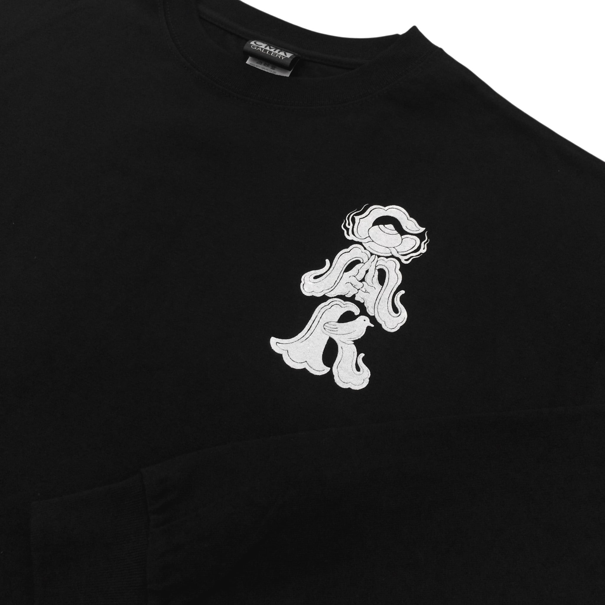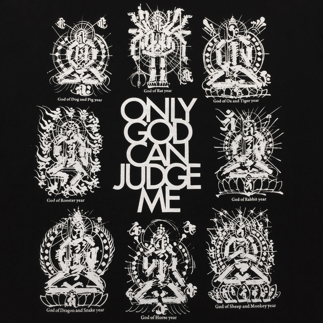 JOECMKのGOD Letter 十二支御守本尊を背面に、左胸にはCMKロゴをプリントしたロンT。十二支守り本尊は古来より"厄除けや開運の守護仏"として信仰されており、千手観音菩薩(子年)、虚空蔵菩薩(丑・寅年)、文殊菩薩(卯年)、普賢菩薩(辰・巳年)、勢至菩薩(午年)、大日如来(未・申年)、不動明王(酉年)、阿弥陀如来(戌・亥年)です。