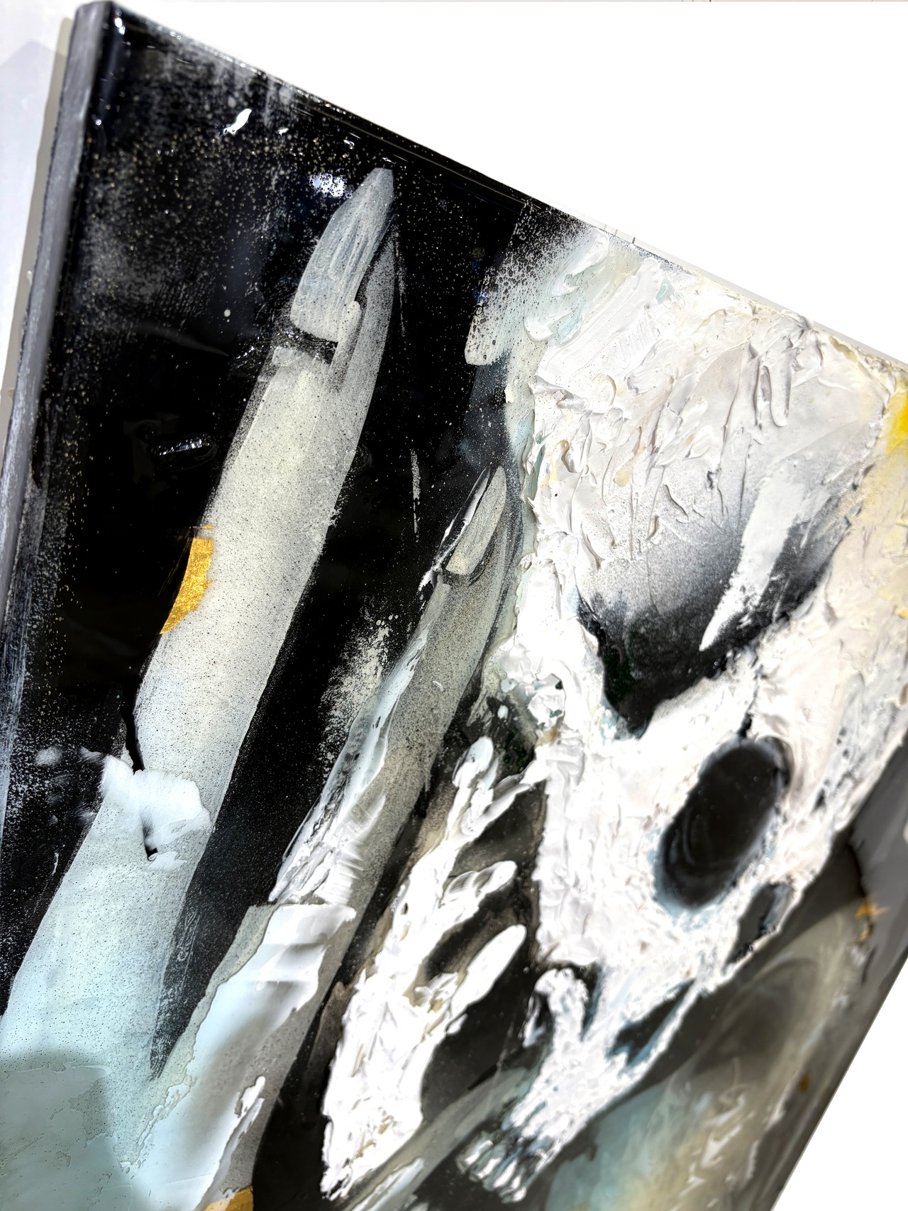 素材 : キャンバス、アクリル、モデリングペースト、金箔、レジン