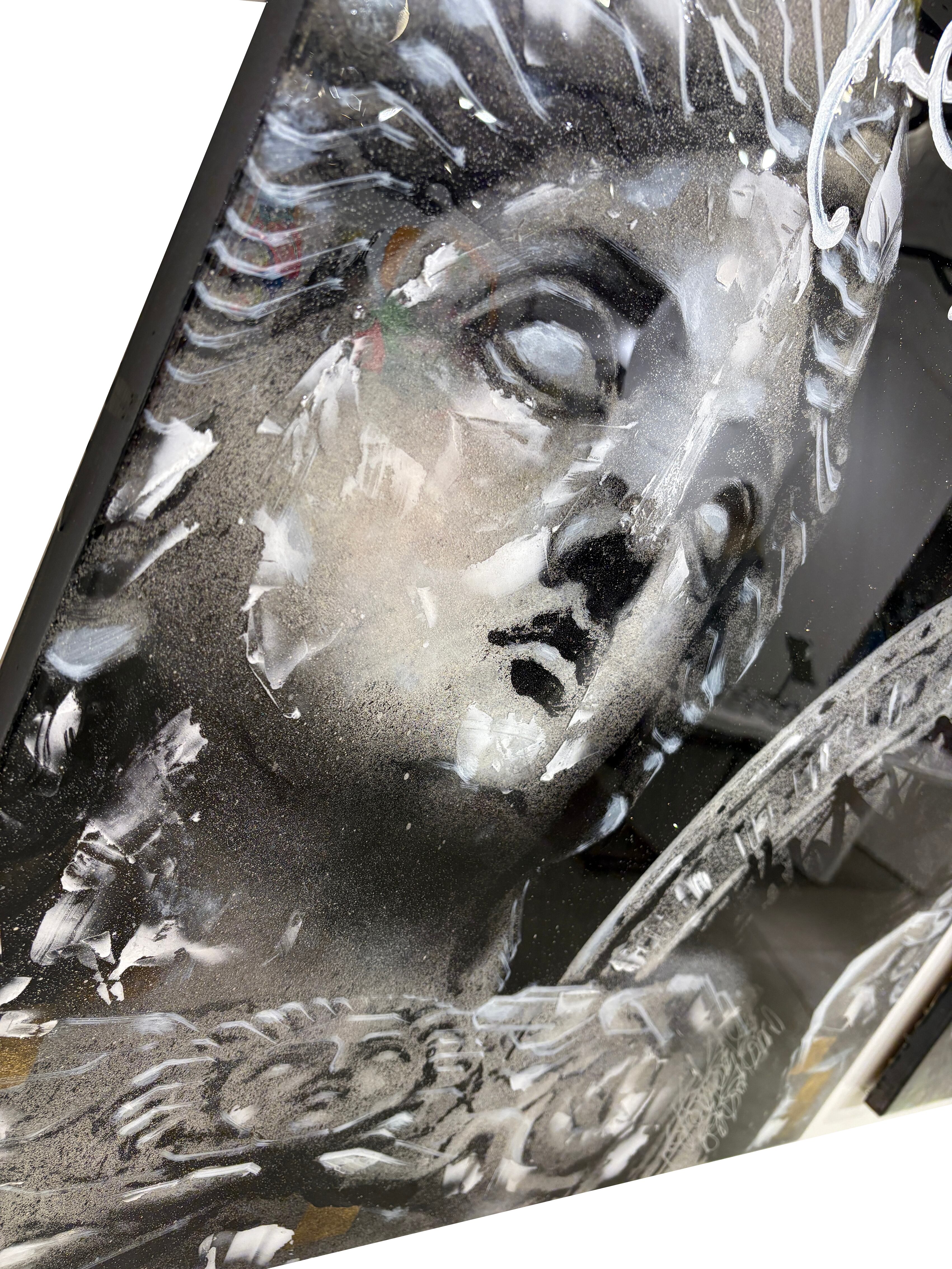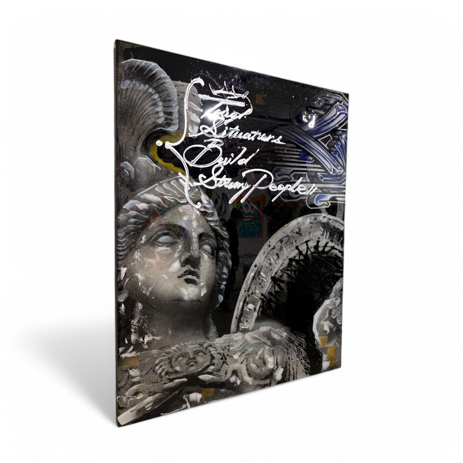 素材 : ウッドパネル、アクリル絵の具、スプレー、金箔、レジン
