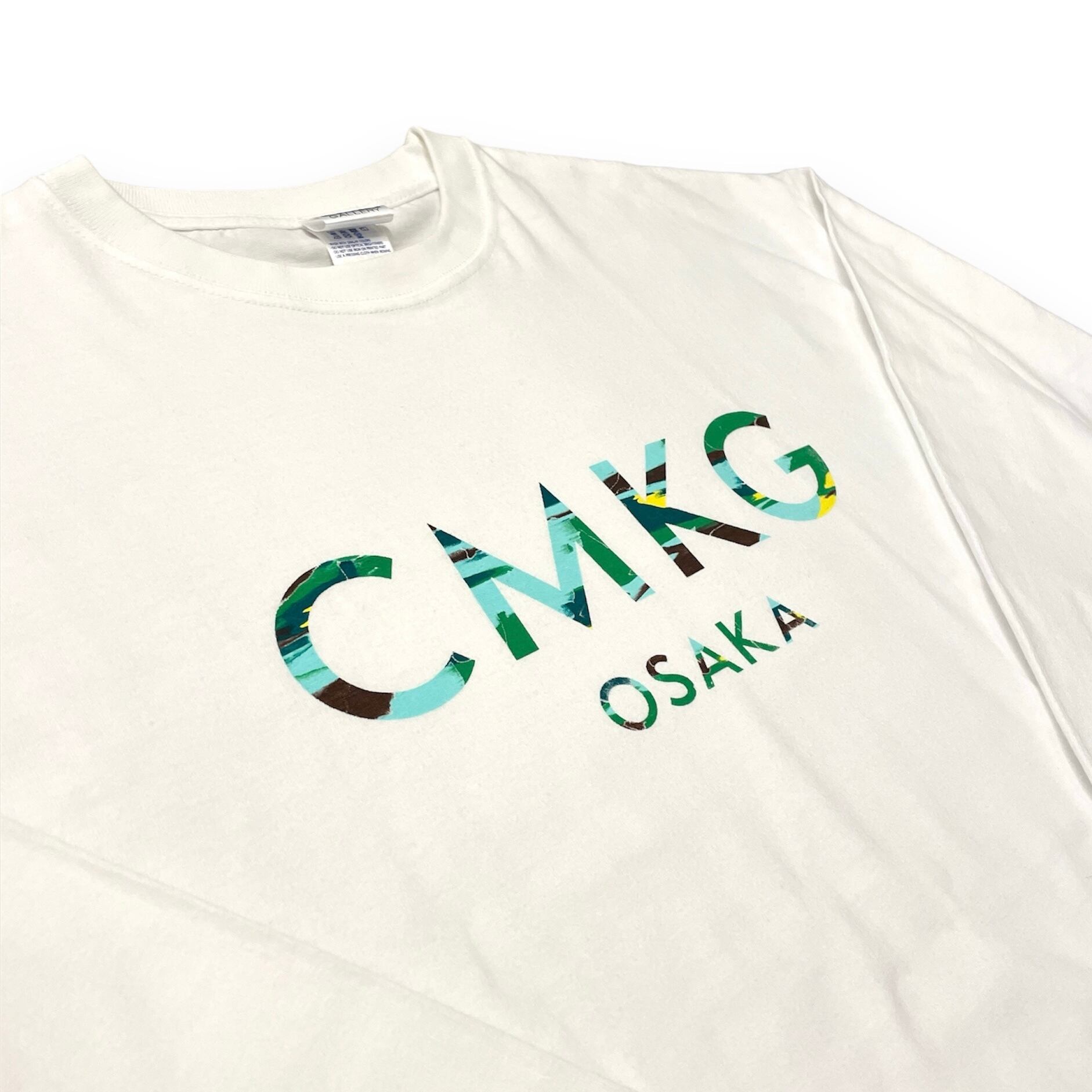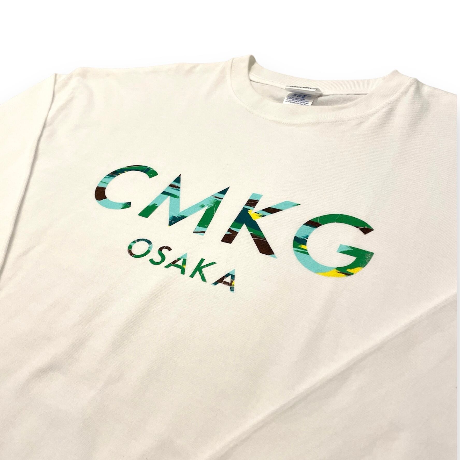 「CMKG OSAKA」をマーブル模様にプリント。シンプルながらも洗練された一着。