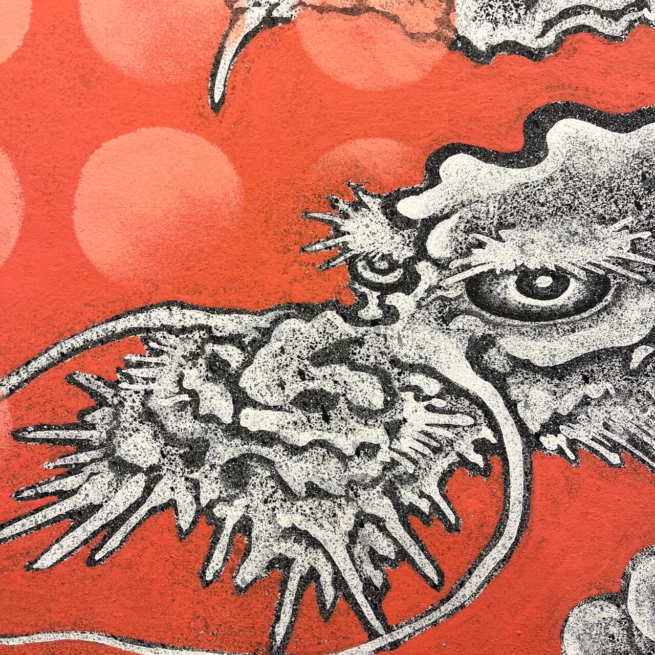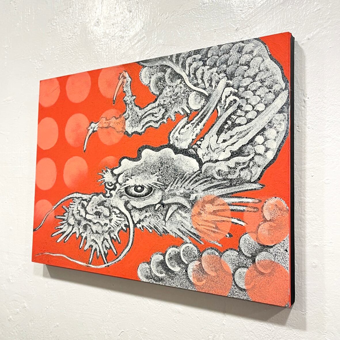 素材 : ウッドパネル、和紙、墨、アクリル、スプレー、