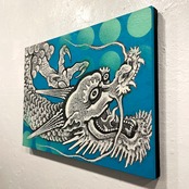 素材 : ウッドパネル、和紙、墨、アクリル、スプレー、