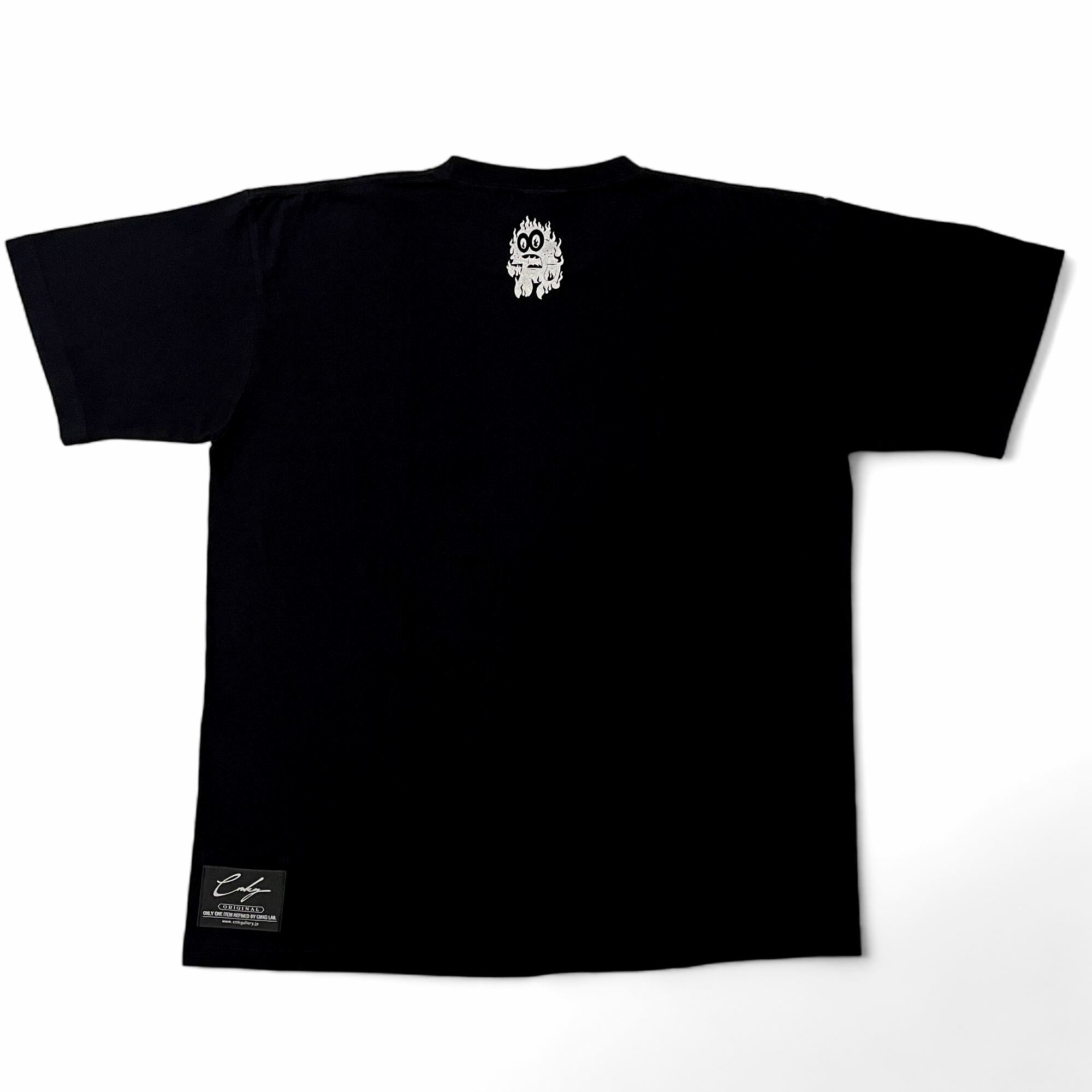 燃えているレタリングを正面胸元に、背面首元にはfirecaspchanをプリントしたUPPER系の一着。