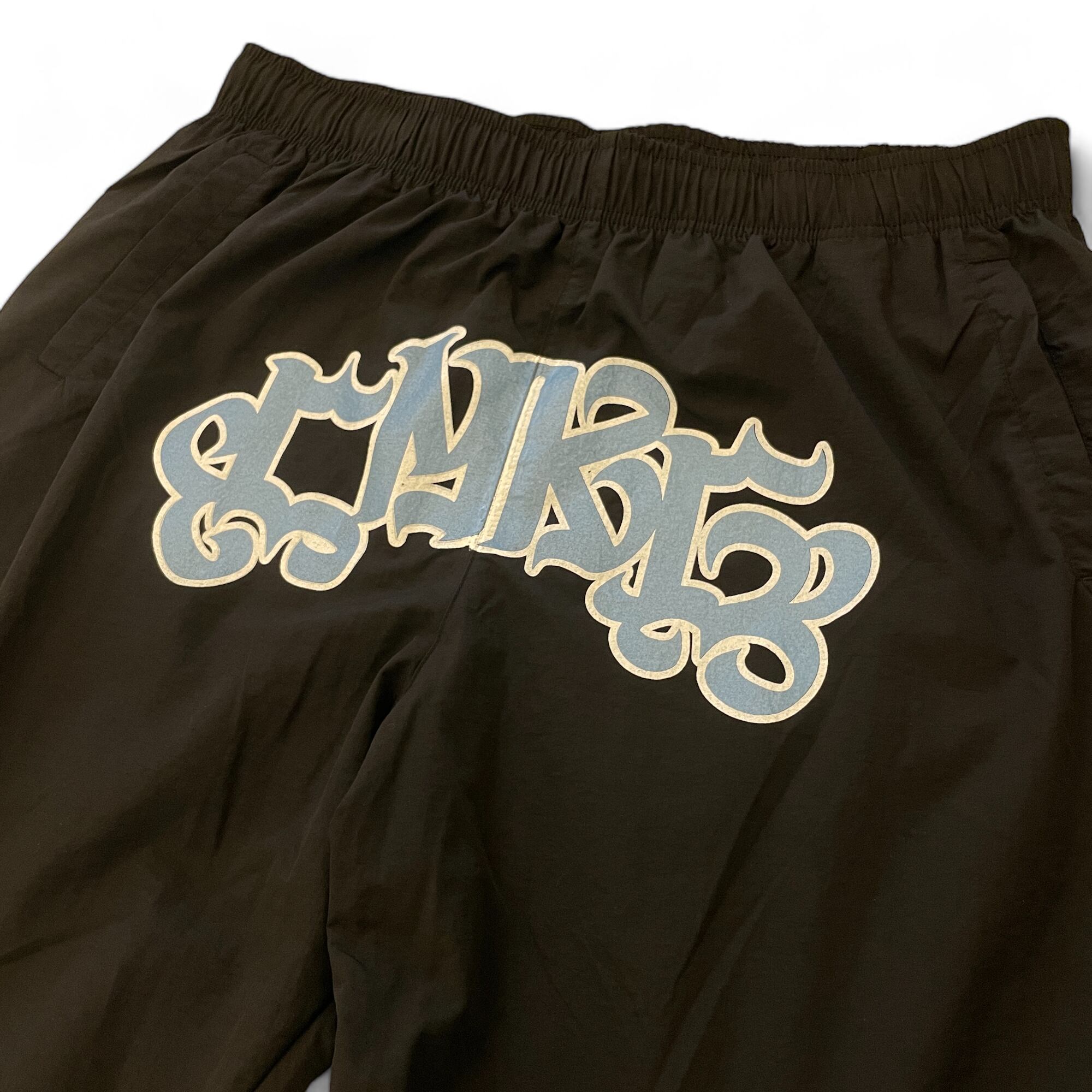 独特のシルエットが魅力的なユニセックスのナイロンパンツ。