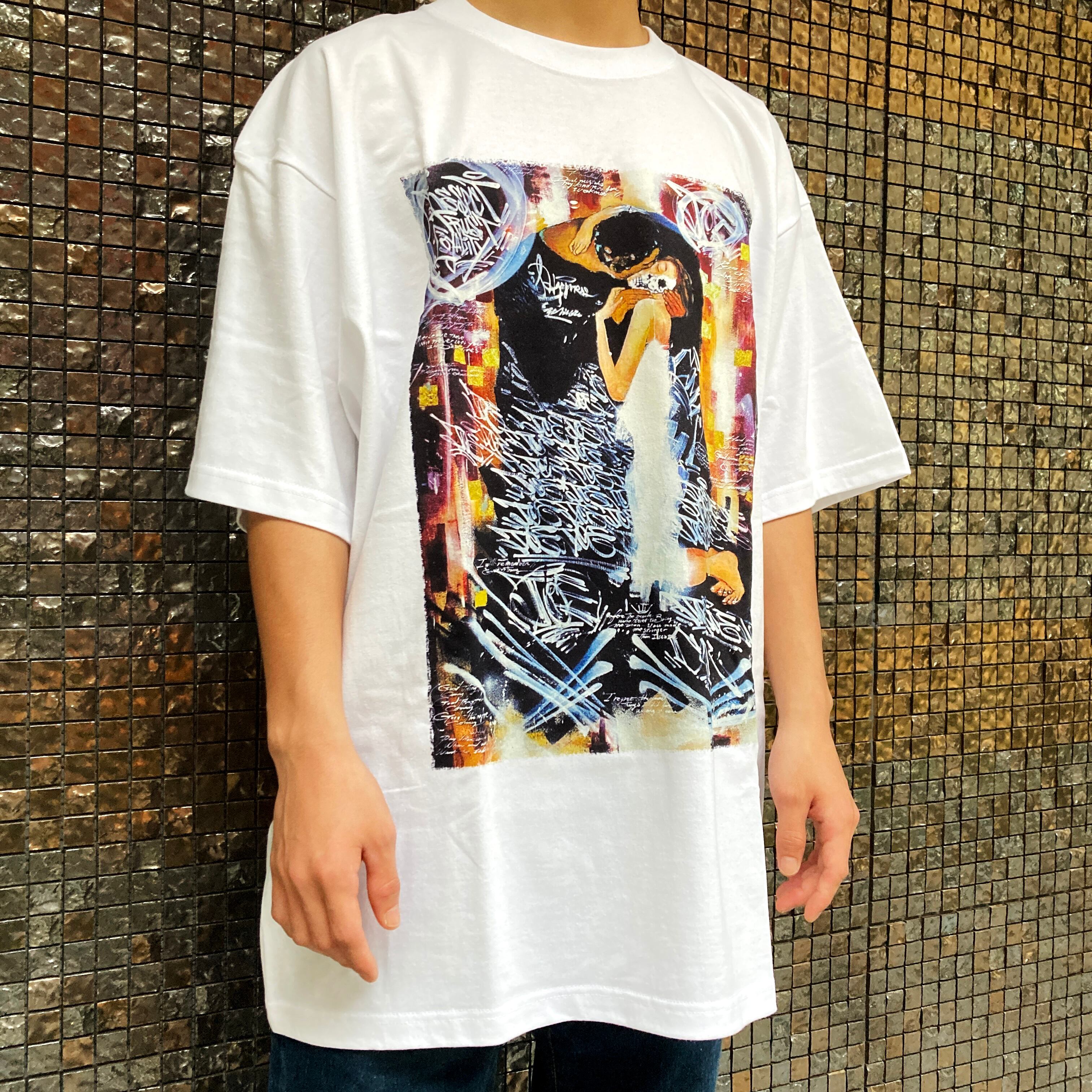所属アーティスト JOEの絵画作品「The kiss」をフロントにプリントした贅沢な一着。