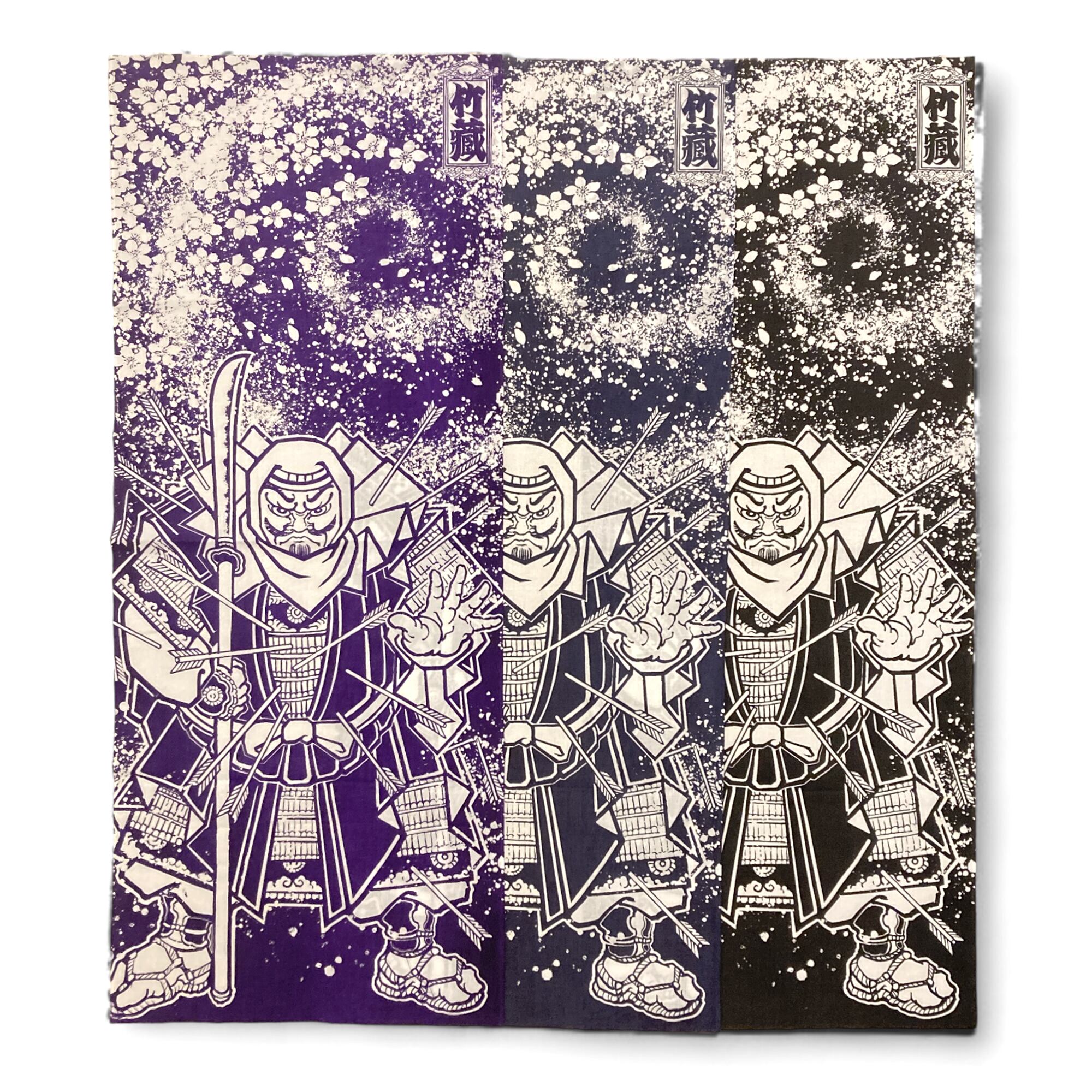 茂呂竹蔵描き下ろしの「弁慶の立往生と渦巻く桜吹雪」を落とし込んだ手拭い。