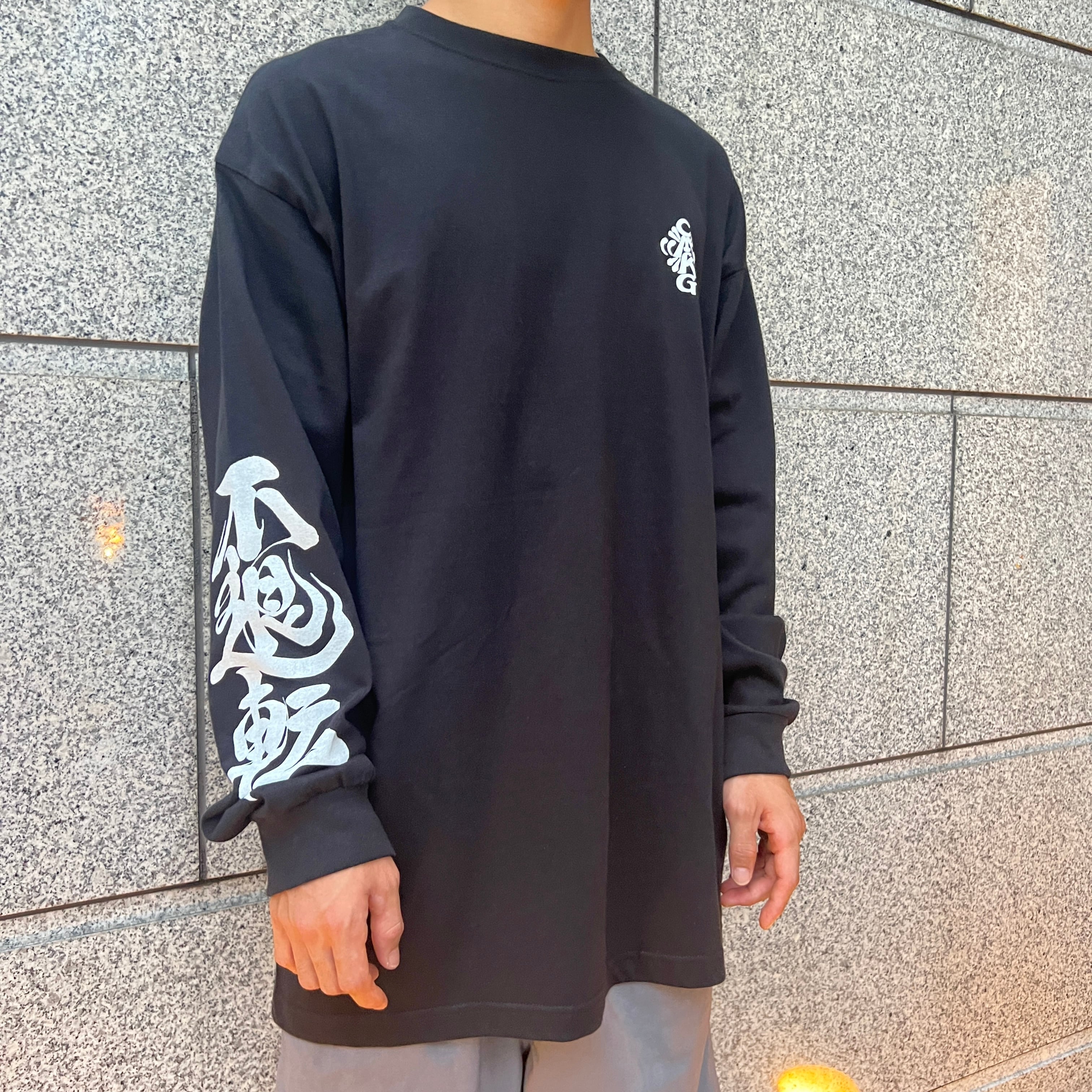 フロント左胸にはCMKGクロスロゴを袖には「不退転」をプリントした一着。
