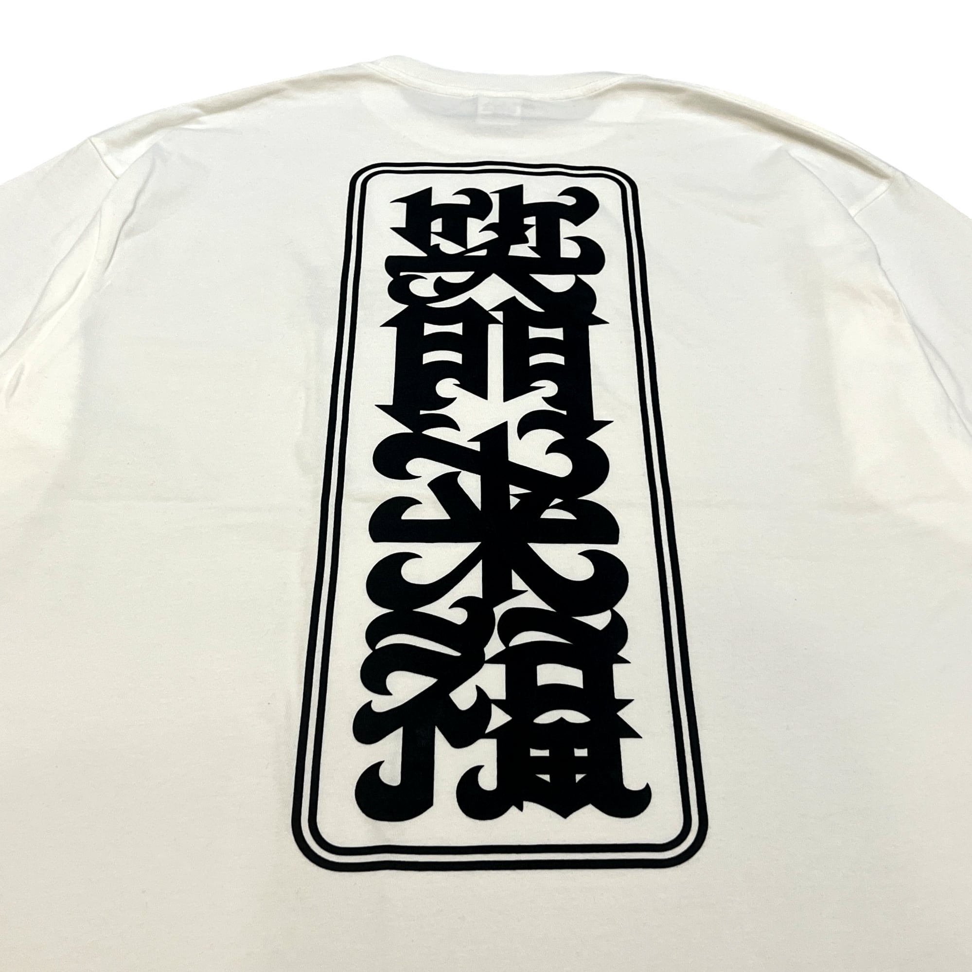 CASPERが描いた「笑門来福」をバックにプリントしフロント胸元には「福」を右袖には「至絵夢敬慈」をプリントした2024ニューデザインのロンT