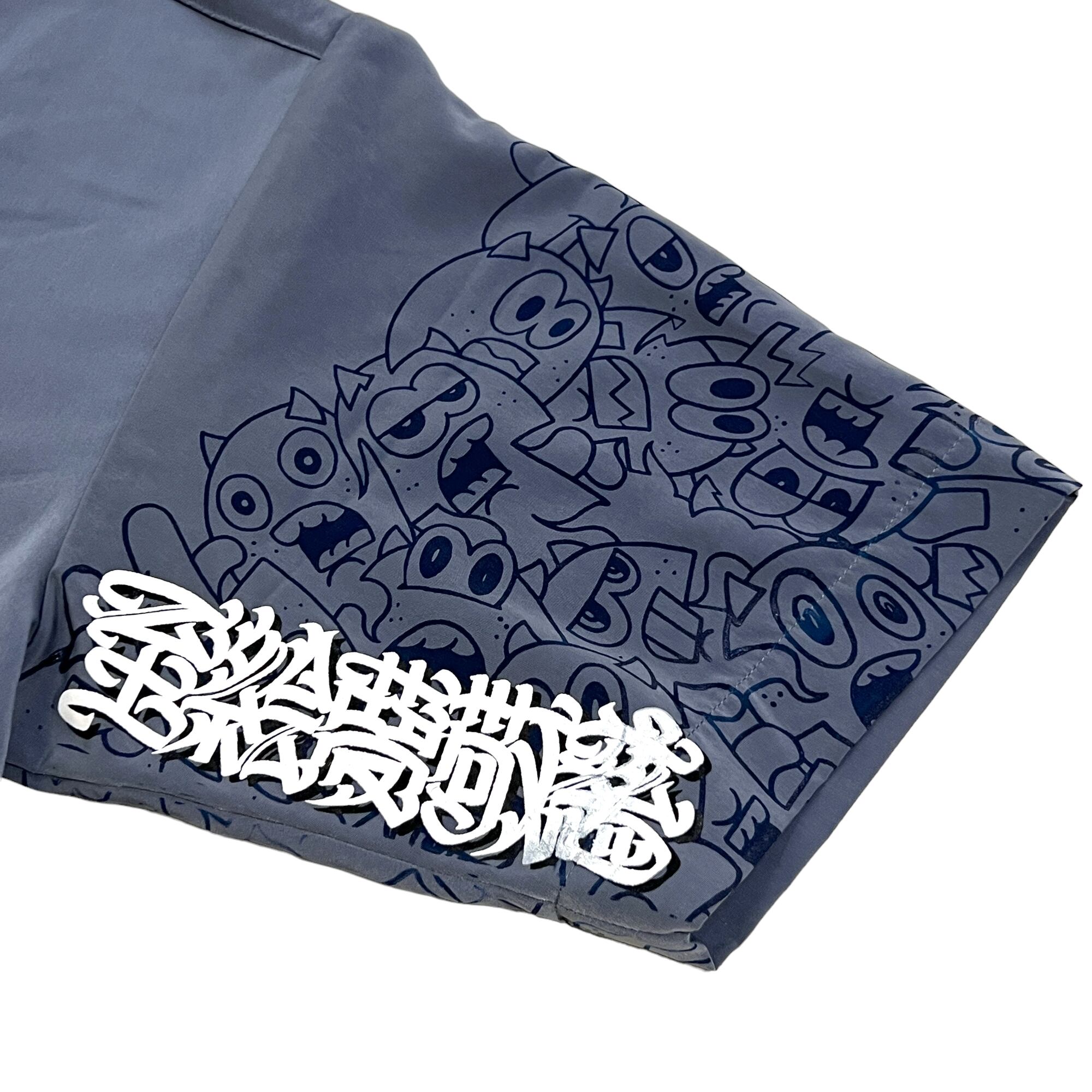 涼しさを感じるなめらかな肌ざわりと絶妙なサイジングの肩落ちシルエットの開襟シャツの袖、襟元にCASPCHANをプリントした一着。胸元にはcmkのオリジナルタグを縫合。