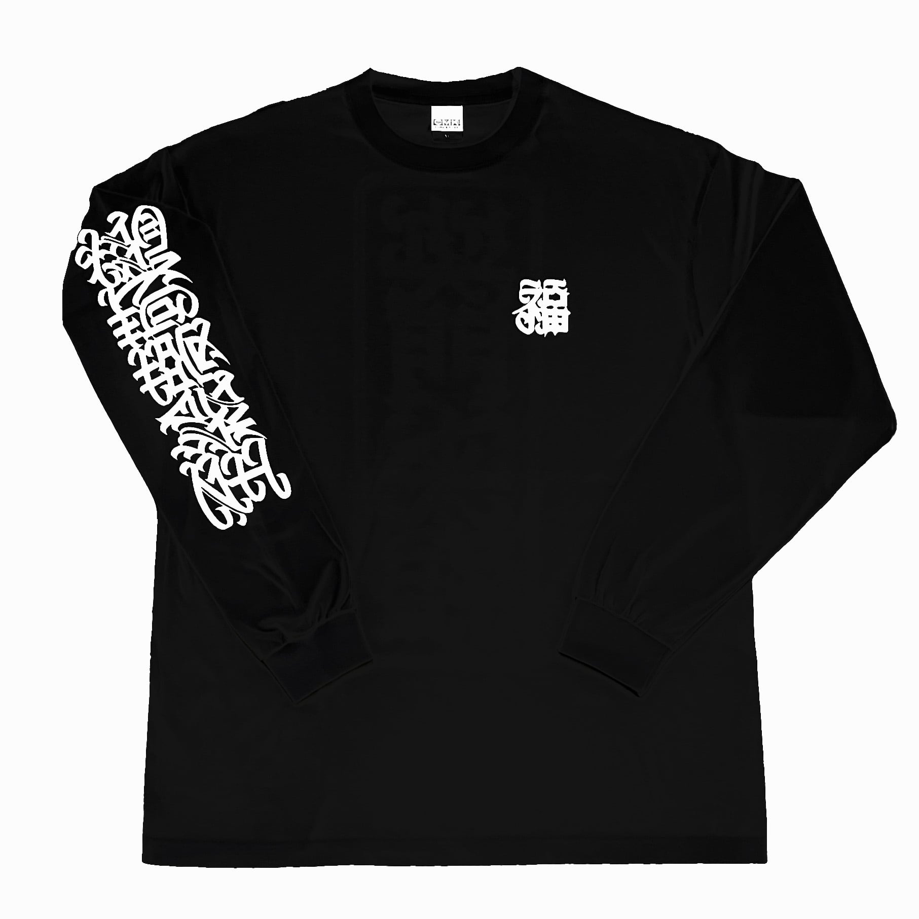 CASPERが描いた「笑門来福」をバックにプリントしフロント胸元には「福」を右袖には「至絵夢敬慈」をプリントした2024ニューデザインのロンT