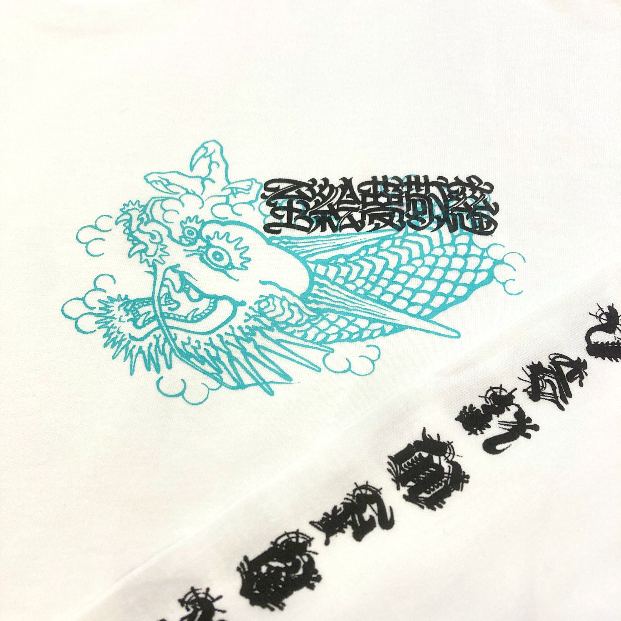 GOD letter を両袖に、胸元には爽やかな色で龍と”至絵夢敬慈”をプリントしたシンプルかつ力強い一着。