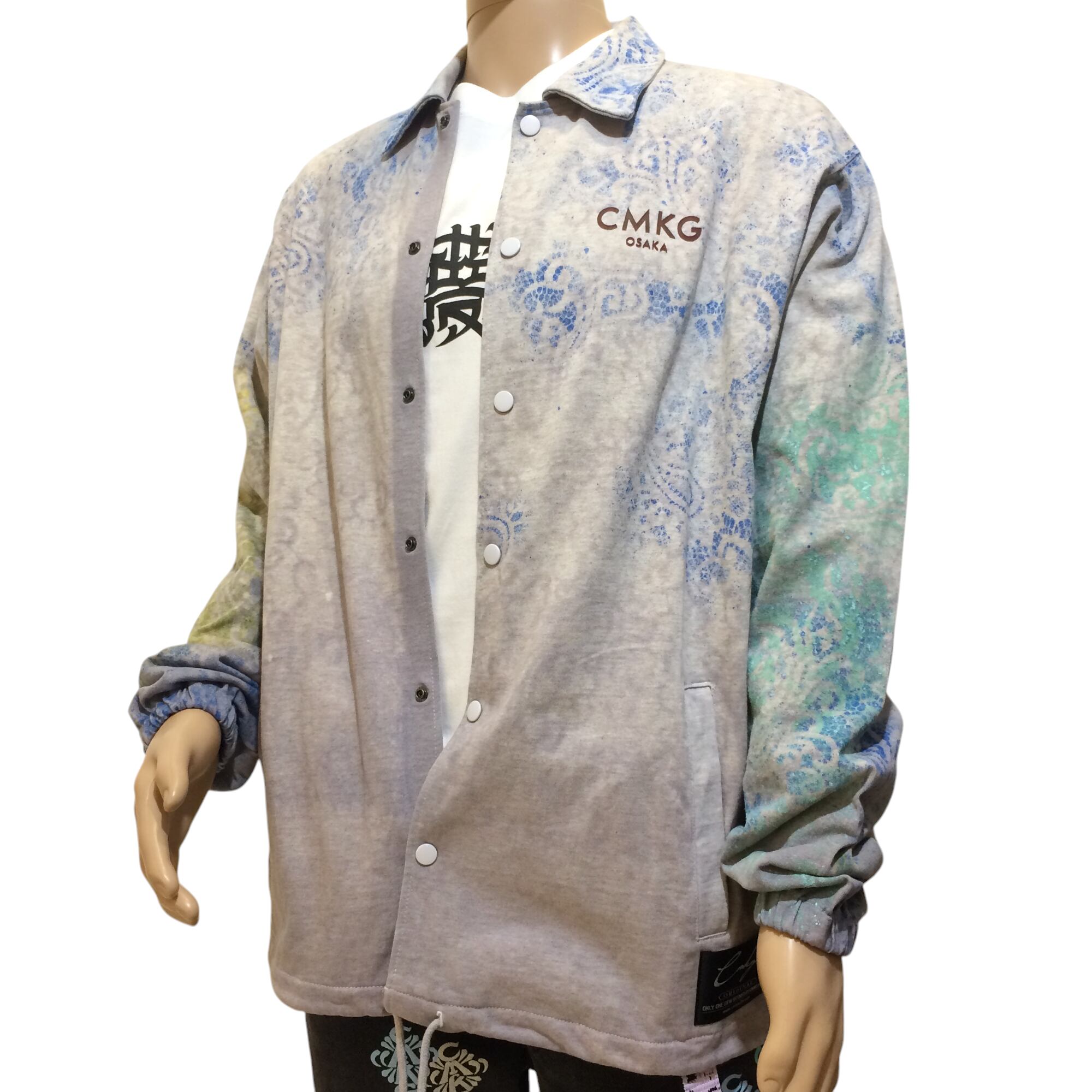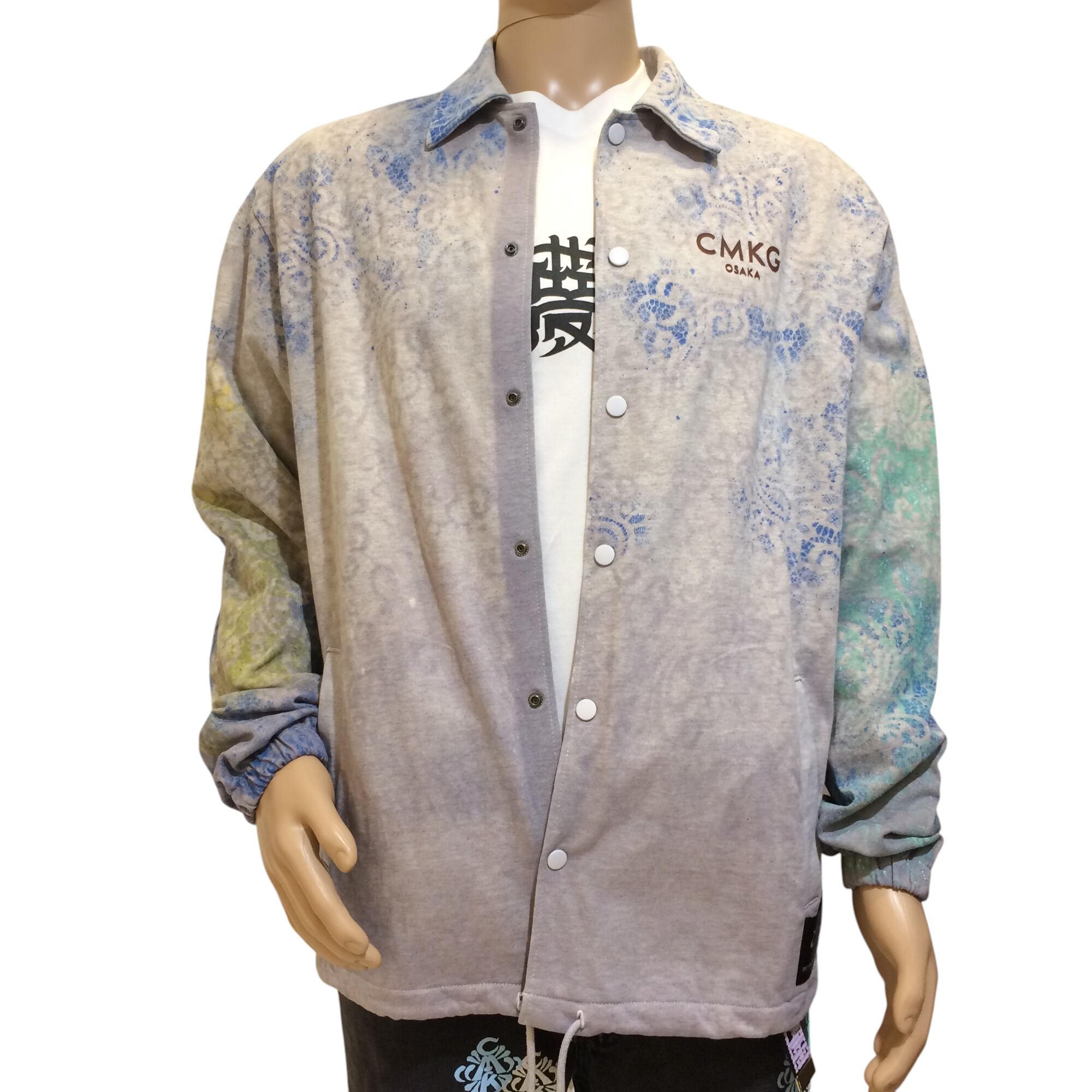 コットン生地のコーチジャケットに染色/脱色加工を施し、