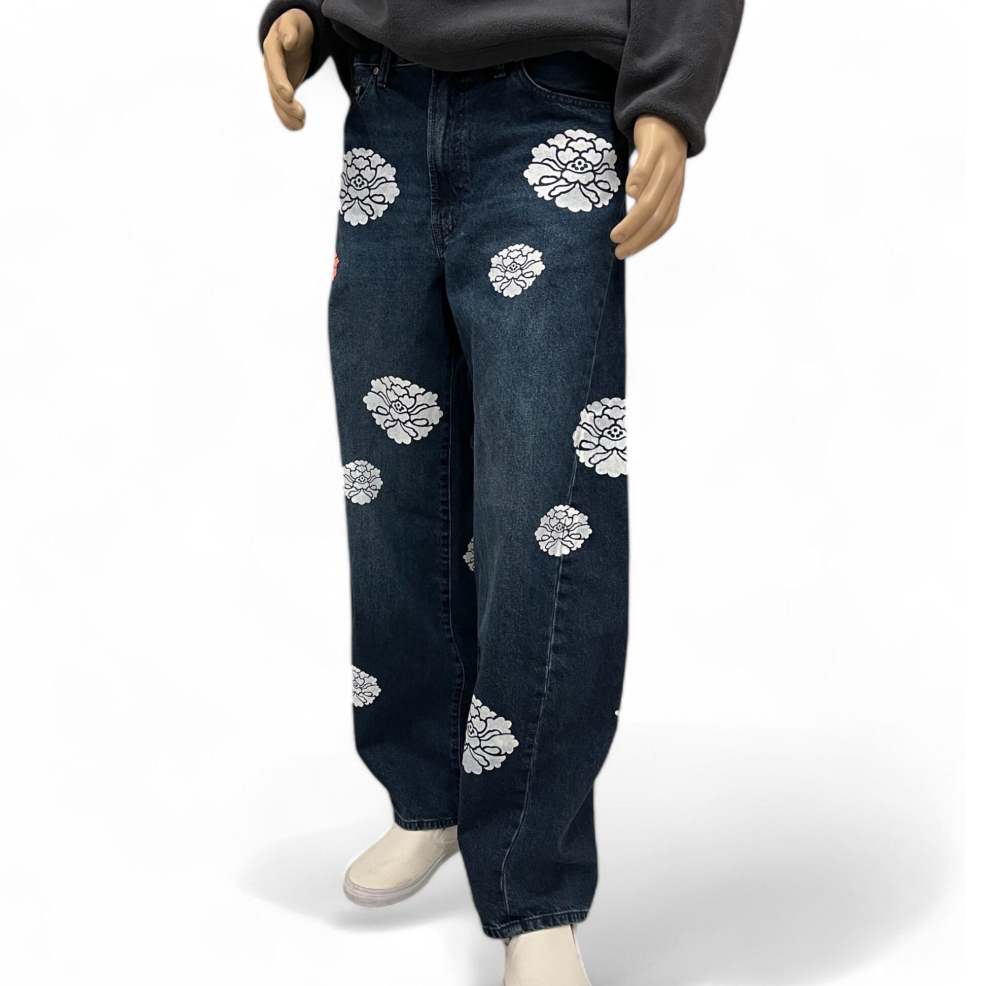 ストリート感強めのファットなシルエットのバレルレッグジーンズを素材に