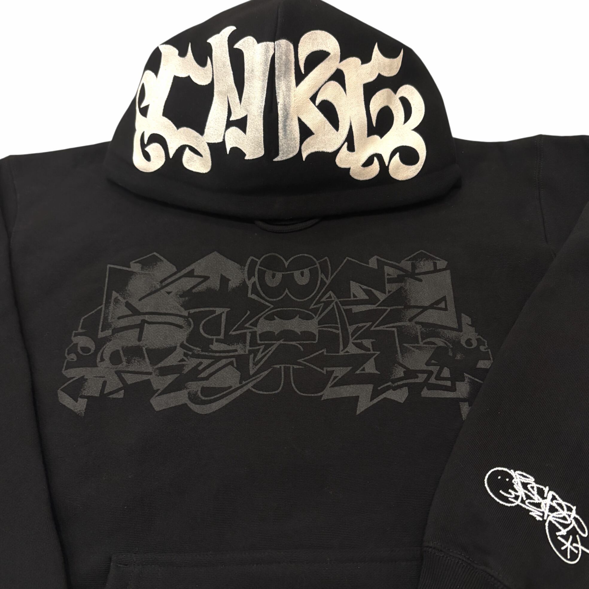 胸元にCASPERのマスターピース、手首にタギング、フードにレタリングをプリントした